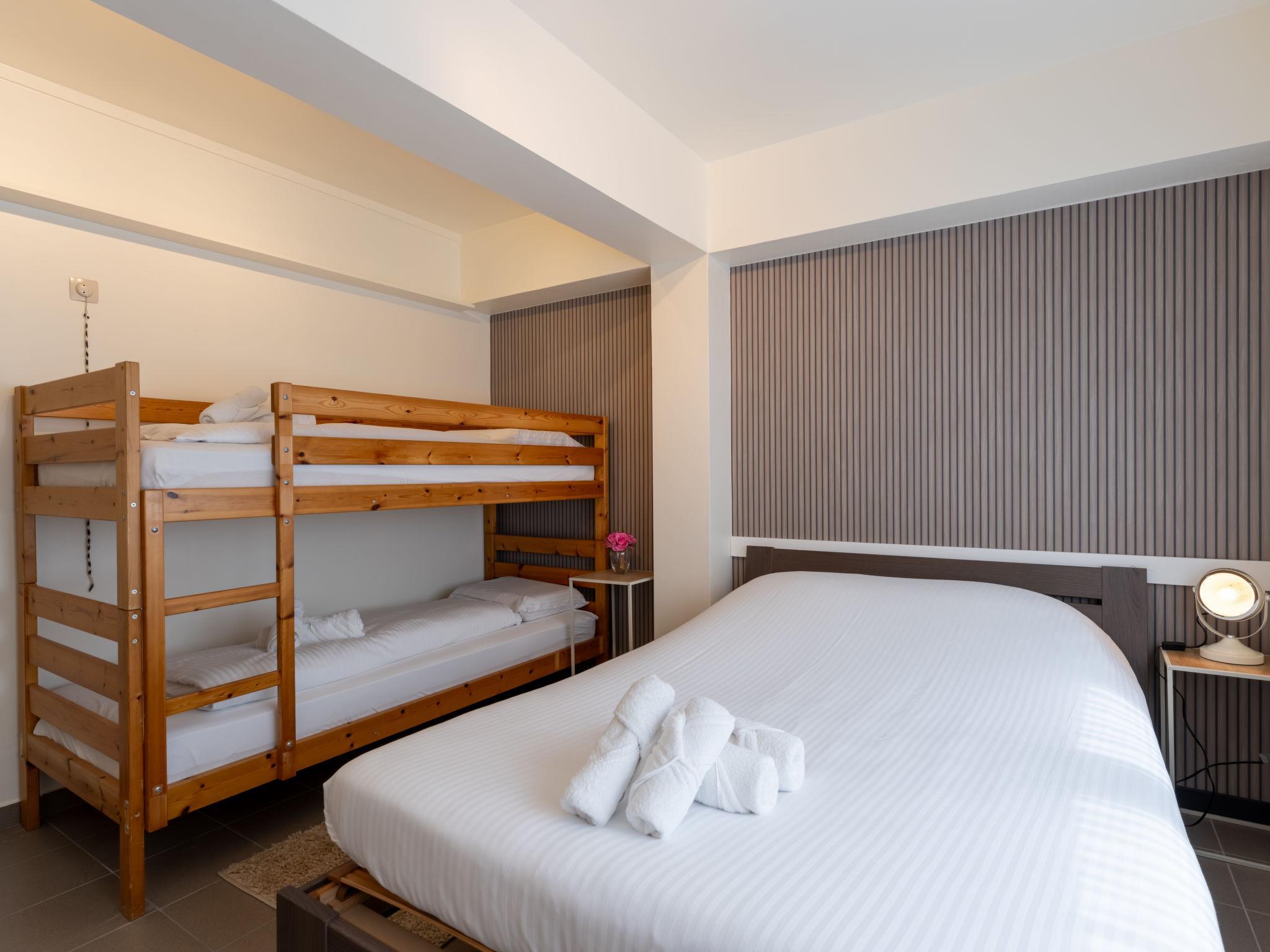 "Arcona", 2-room apartment on 2nd floor. Comfortable and modern furnishings: entrance hall. Open living/dining room with dining table, digital TV and international TV channels. 1 double bedroom with 1 x 2 bunk beds (90 cm, length 200 cm), 1 double bed (160 cm, length 200 cm). Open kitchen (4 hot plates, oven, toaster, kettle, microwave, electric coffee machine). Shower/WC. Heating. Facilities: hair dryer. Internet (WiFi, free). Please note: non-smoking house. Smoke alarm, fire extinguisher, no lift.
