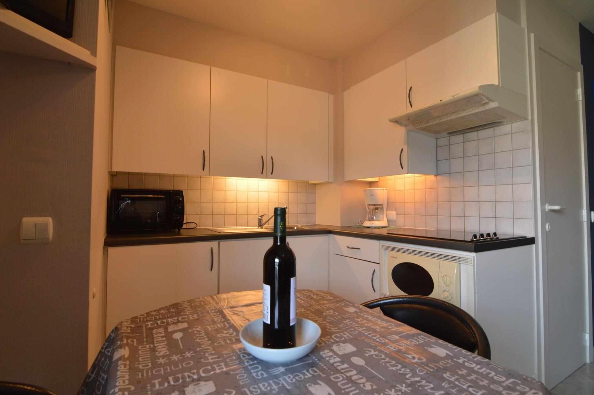 Njut av en avkopplande kustnära flykt på Apartment Sunrise, en charmig vistelse för par eller små familjer i Bredene, bara 700 meter från Nordsjöstranden. Denna lägenhet ligger inbäddad i den fridfulla Blutsyde-domänen och erbjuder tillgång till en gemensam pool, en lummig trädgård och närliggande skogsstigar, perfekta för morgonpromenader eller cykelturer i solnedgången. Lägenheten har ett mysigt sovrum med dubbelsäng och inbyggda garderober, ett modernt badrum med dusch och handfat samt ett välutrustat kök för hemlagad mat. Boendet är idealiskt för att varva ner efter en dag på stranden, och parkering finns bara 120 meter bort i Blutsyde-skogen. Observera: rökning är inte tillåten. För att äta middag, utforska lokala favoriter som Pizza Del Salento för avslappnad italiensk mat, eller njut av en mysig kväll på Club 13, bara en kort promenad bort. För en naturskön skaldjursupplevelse, bege dig till De Kleine Garnaal i närliggande Oostende. Och om du är på humör för en kulturell promenad, erbjuder Bredene Dunes och Grasduinen Park vackra vandringsleder direkt från din dörr.
