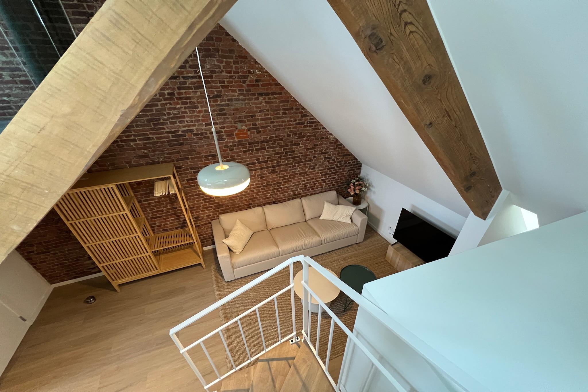 Snygg och hållbar lägenhet för 4 personer i hjärtat av Bree (A-energimärkning) Denna eleganta lägenhet för 4 personer ligger på andra och tredje våningen i ett vackert renoverat före detta gendarmerihus i centrala Bree. Bakom den karaktärsfulla fasaden hittar du ett lugnt och bekvämt utrymme där charm, rymlighet och modern boendekomfort möts. Det ljusa vardagsrummet kombinerar livsstil och avkoppling på ett naturligt och behagligt sätt. Varma material, diskreta vintagedetaljer och en väl genomtänkt planlösning skapar en mysig och hemtrevlig atmosfär. Det vackra loftet ger lägenheten en särskilt rymlig karaktär och ger rikligt med naturligt ljus, vilket förstärker den öppna och luftiga känslan. Under renoveringen gjordes ett medvetet val att prioritera återvinning, hållbara material och energieffektiv teknik, vilket resulterade i en framtidsinriktad lägenhet med A-energimärkning. Börja dagen avslappnat på den privata terrassen med en kopp kaffe och koppla av på kvällen efter en dag på jobbet eller en utforskande promenad. Tack vare det centrala läget kan du njuta av alla bekvämligheter inom bekvämt räckhåll, samtidigt som du upplever gott om avskildhet. Lägenheten har: - Centralt läge i Bree - Mysigt vardagsrum med sittgrupp, matbord och TV - Öppet kök med spis, ugn, diskmaskin och all nödvändig köksutrustning - Separat sovrum med dubbelsäng - Loft med bekväm bäddsoffa för två personer - Modernt badrum med dusch, handfat och toalett - Privat terrass - Golvvärme och luftkonditionering - Parkering och cykelförvaring - Gemensam tvättmaskin och torktumlare Bree och omgivningarna erbjuder den perfekta blandningen av lugn och ro och äventyr. Du kan enkelt promenera till butiker, kaféer och restauranger eller utforska regionen med cykel på unika leder som att cykla genom vattnet och genom träden. Detta läge är också idealiskt för shoppare: Maasmechelen by ligger bara 20 minuters bilresa bort. Oavsett om du reser som ett par, med vänner eller med familj, erbjuder denna lägenhet allt du behöver för en bekväm, avkopplande och bekymmersfri vistelse.