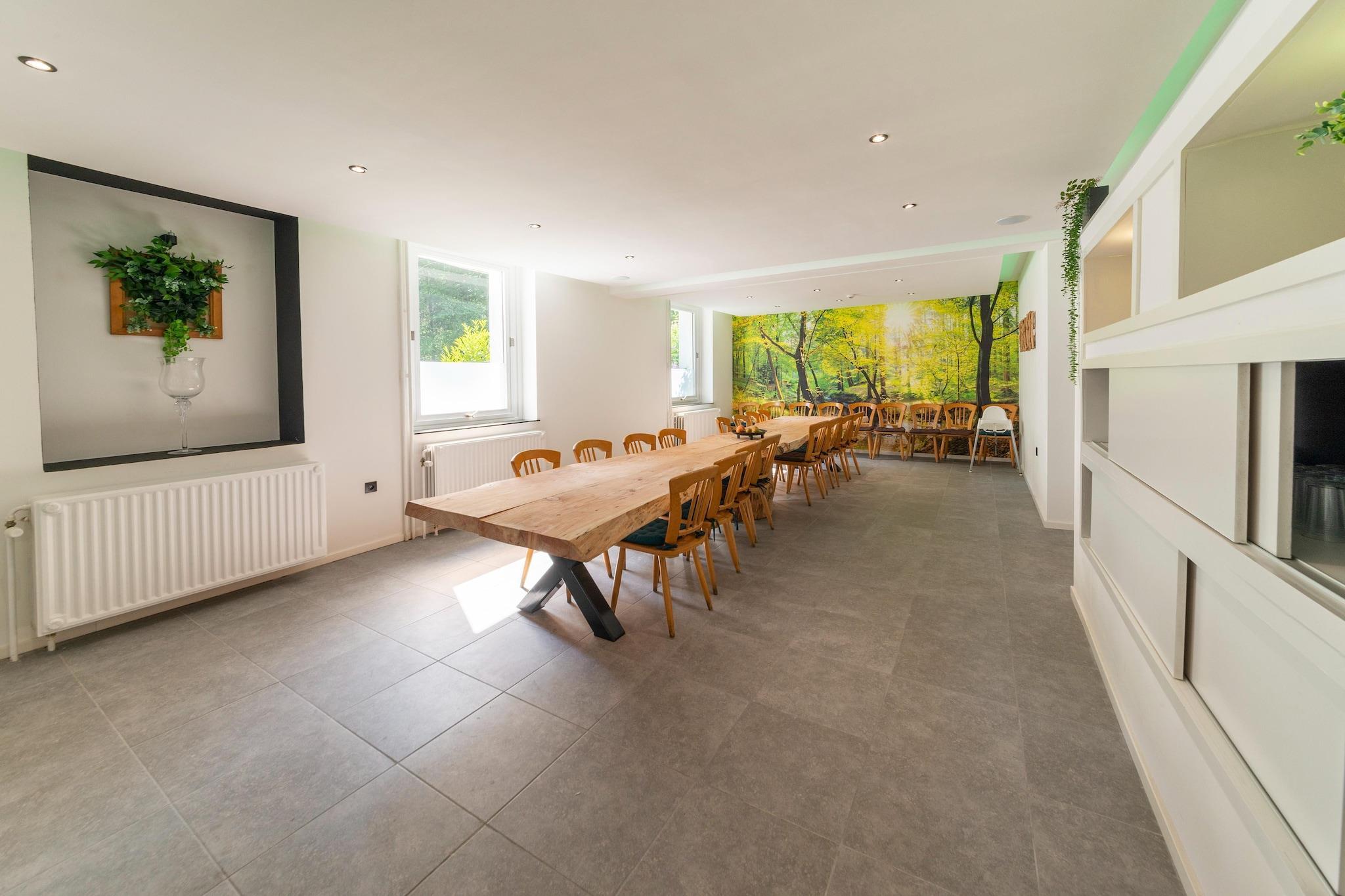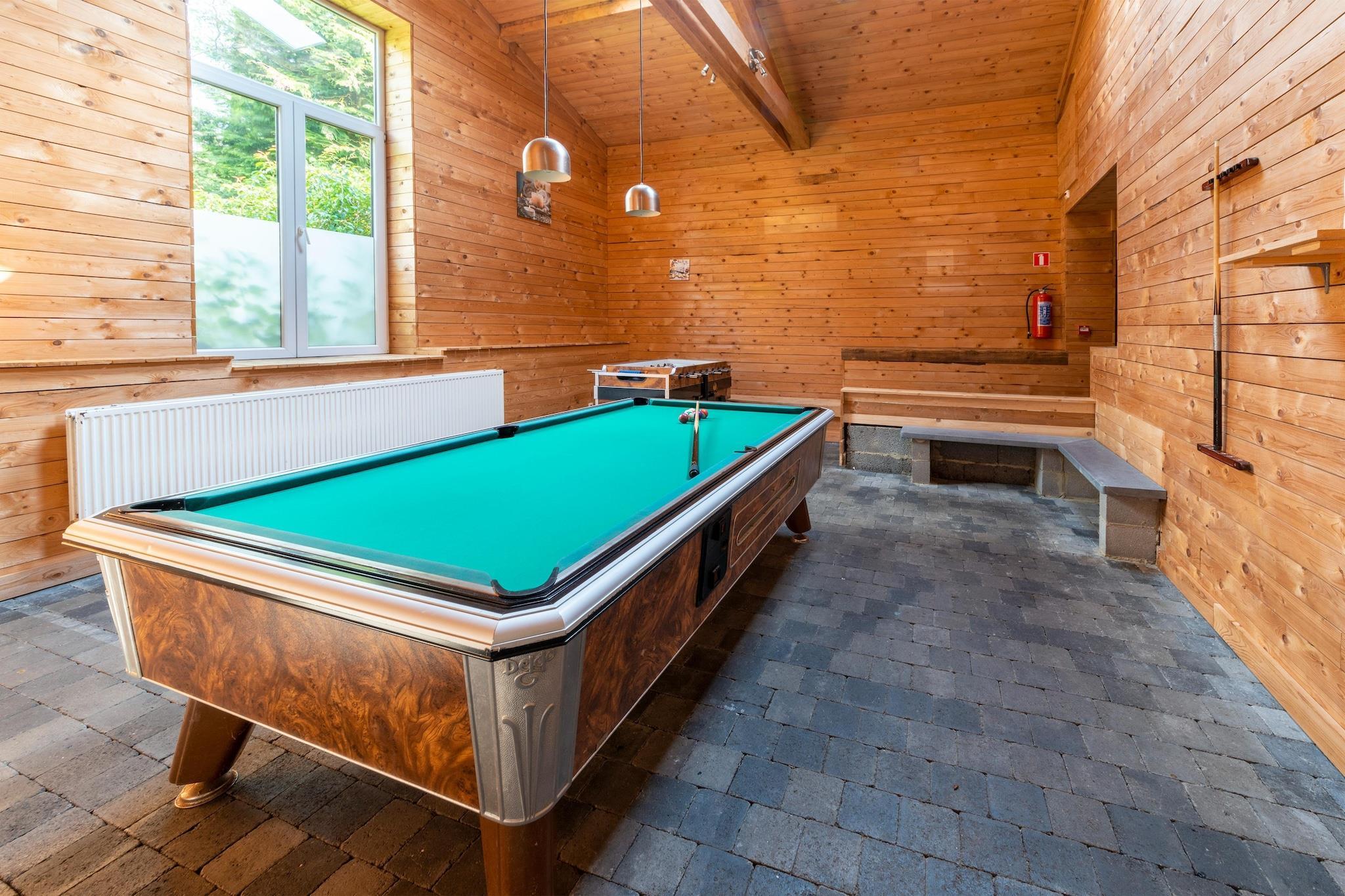 Denna lyxiga herrgård med 10 sovrum i Büllingen erbjuder den perfekta oasen för upp till 23 gäster. Undangömt i en lugn by, den har en privat pool som fungerar som bastu och bubbelbad, ett vardagsrum med bar och ett spelområde med biljard, bordsfotboll, bordtennis och dart, perfekt för roliga kvällar med familj och vänner. En elegant glasdörr öppnar sig mot en solig terrass med utemöbler och en grill, perfekt för måltider utomhus. Gratis WiFi och parkering på plats ingår. För ridgäster finns en inhägnad äng med vatten att hyra tvärs över huset. Läget är idealiskt för vandring och naturvandringar, med High Fens-reservatet och sjöarna Robertville och Bütgenbach i närheten. Lièges flygplats ligger 93 km bort och kan nås på drygt 1 timme med bil. Oavsett om du kopplar av vid poolen eller utforskar Ardennerna, erbjuder denna herrgård utrymme, komfort och oförglömliga minnen.