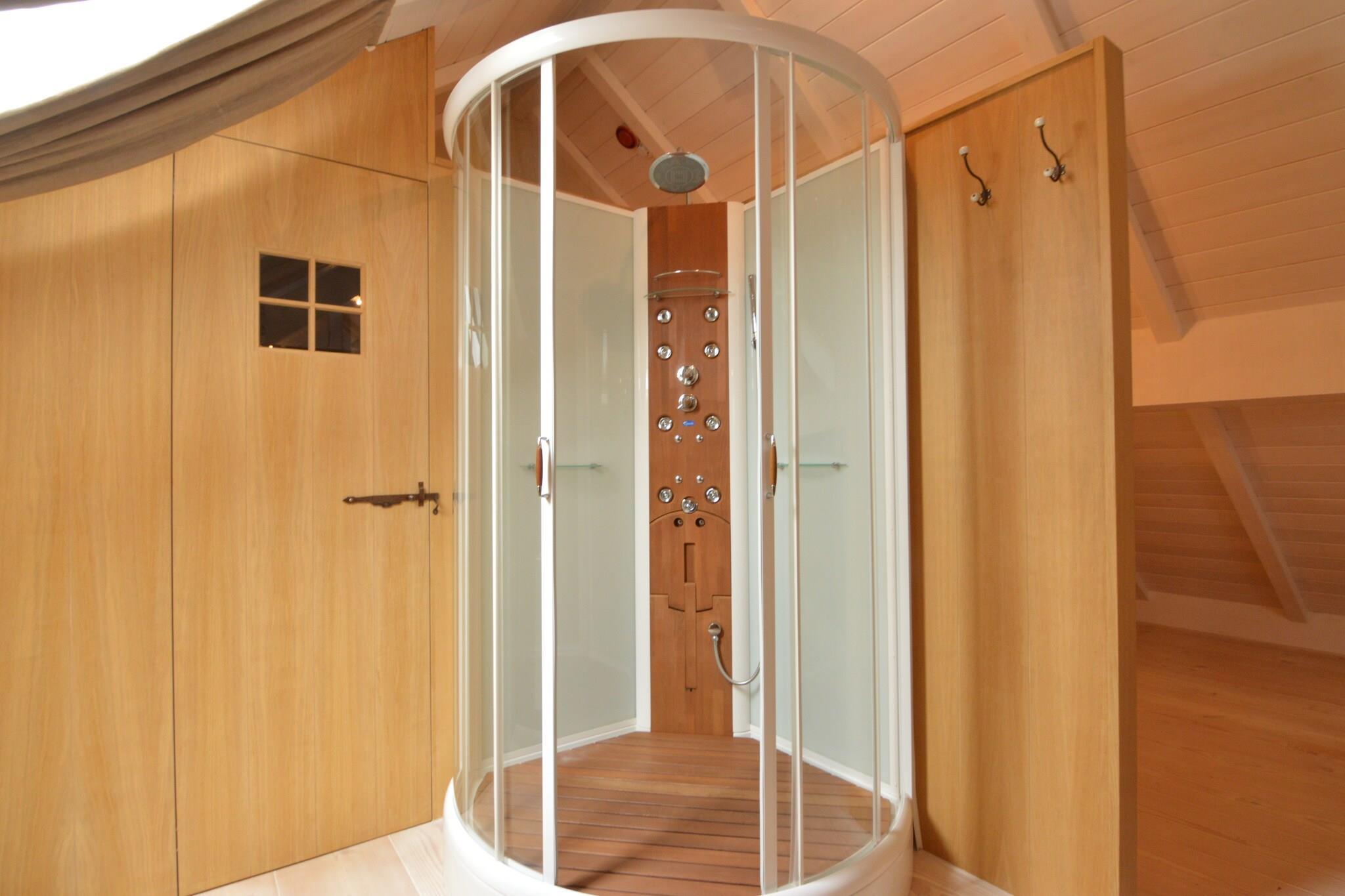 Bottenvåningen: (Hall(delas med ägaren), Kök(matbord, vattenkokare, spis(Spis med 4 kokplattor), kaffebryggare, Espressobrygga, ugn, mikrovågsugn, kyl och frys, tvättmaskin)) På våning 1: (Vardagsrum(Braskamin(trä), sitthörna), Vardagsrum(TV(satellit)), sovrum(dubbelsäng, spjälsäng), badrum(dusch, infraröd bastu, handfat, toalett )) På våning 2: (Bedroom with bathroom(dubbelsäng, TV(satellit), massagedusch, handfat, toalett ), enkelsäng) bastu, värme(central), terrass(privat), trädgård, trädgårdsmöbler, grill, Parasoll, barnstol, sällskapsspel