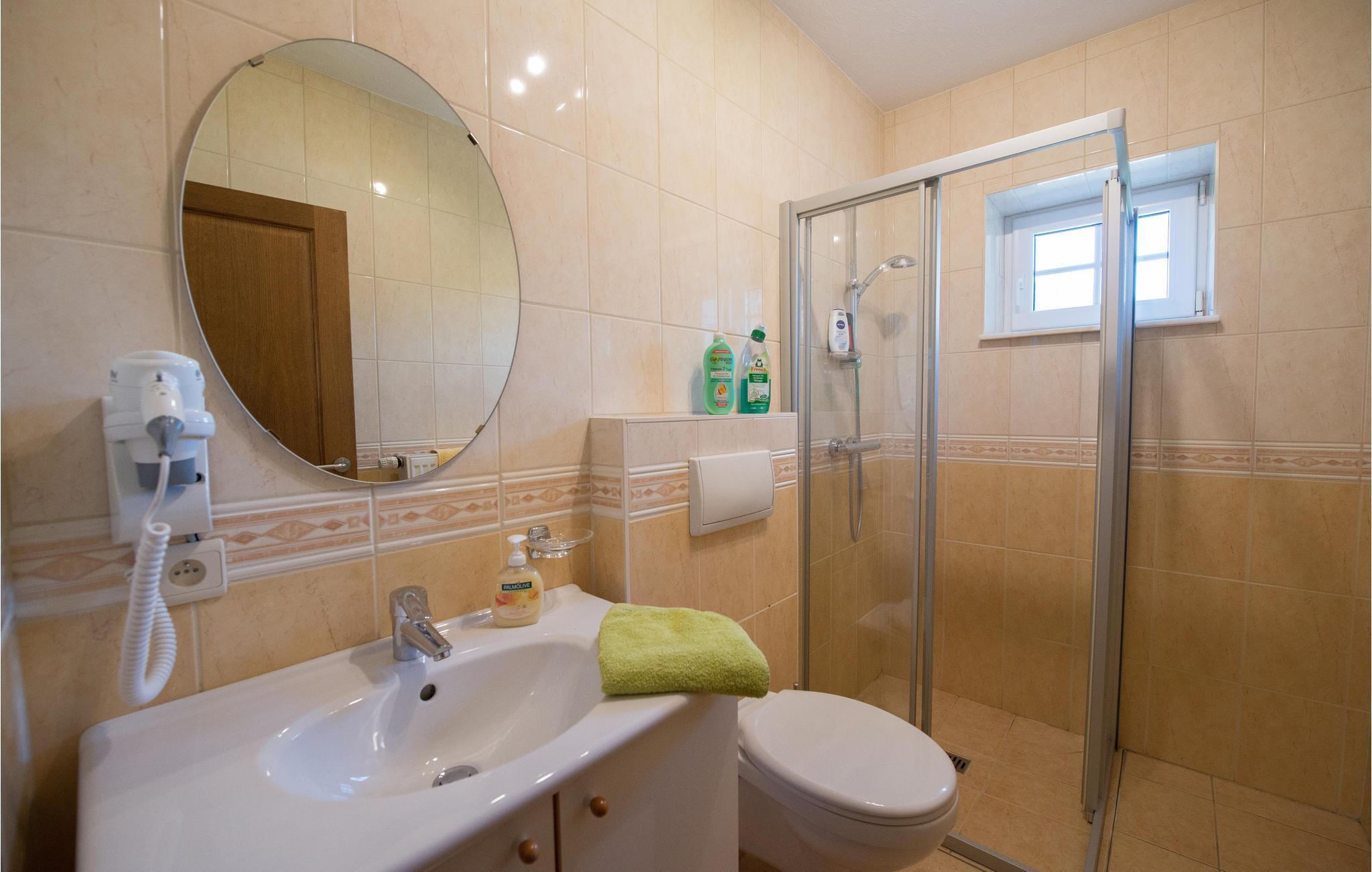 Badrum (nr. 1) - WC: Varmt och kallt vatten. Dusch