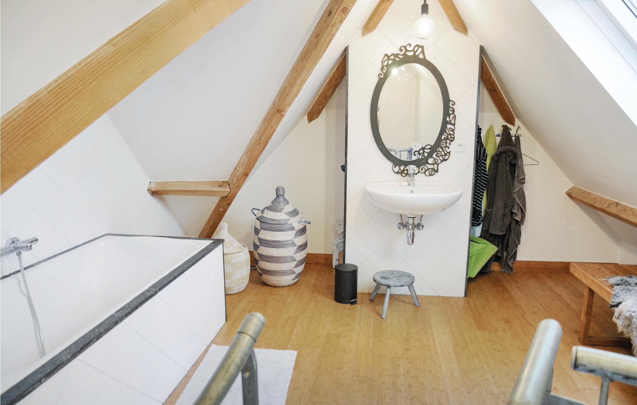 Detta autentiska hus med torn ligger i utkanten av Ardennerna i Condroz nära staden Ciney. Landskapet här är pittoreskt med böljande fält och de stora skogsområdena. Det är ett idealiskt område för cykling. Du kan uppleva allt i grannskapet: Han-grottorna, det vackra naturreservatet Chevetogne med lekplatser, simbassänger och dammar. Dinant, Durbuy och La Roche kan nås på en halvtimme. Det här huset var en gång i tiden hem för slottets viltvårdare. Nu är det ett mycket originellt inrett hus med moderna bekvämligheter. Vardagsrummet och köket finns i det tidigare huset. Det finns ett sovrum på varje våning i tornet. Trapporna är ganska branta. I tornet har du den vackraste utsikten över hela regionen. Runt huset börjar skogarna och åkrarna genast. Din egen tomt är inte mindre än 20 000 m² och erbjuder otaliga möjligheter att hitta en privat plats.