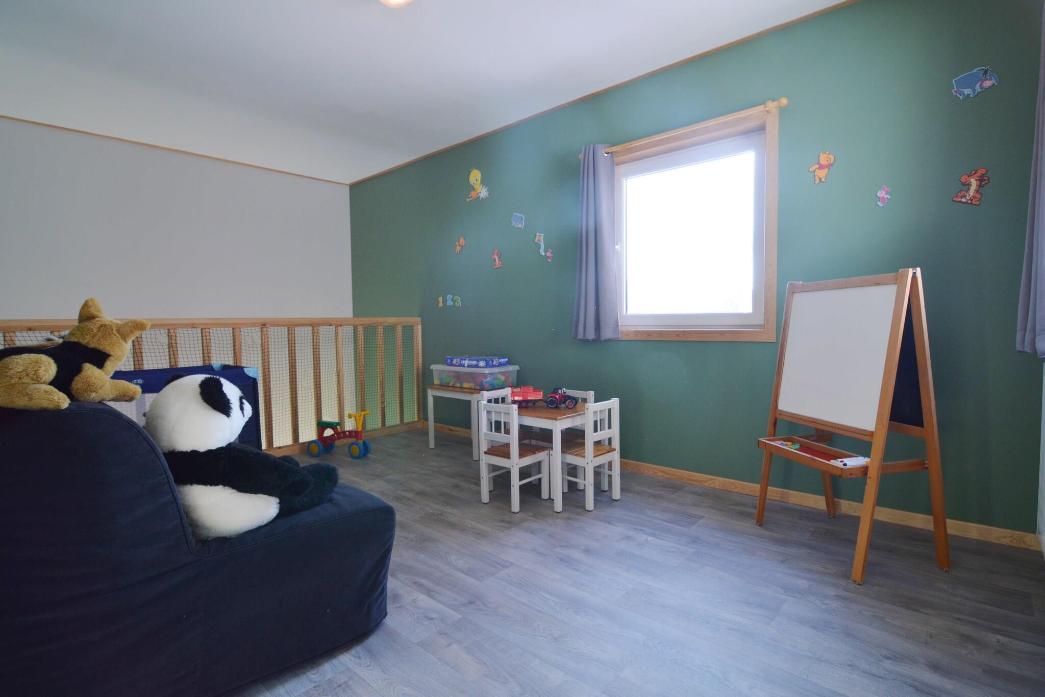 Bottenvåningen: (Hall(toalett ), öppet kök(spis(Spis med 4 kokplattor, elektrisk), 2x kaffebryggare(kaffetratt, kaffekapslar), ugn, mikrovågsugn, diskmaskin, kylskåp, frys), ardags- och matrum(TV, matbord, radio, CD-spelare), tvättstuga, relaxavdelning(Bubble bath, bastu)) På våning 1: (Bedroom with bathroom(2x enkelsäng(90 x 200 cm), dubbelsäng(90 x 200 cm), dusch, handfat), Bedroom with bathroom(2x enkelsäng(90 x 200 cm), dusch, handfat), Bedroom with bathroom(2x enkelsäng(90 x 200 cm), dusch, handfat), WC, aktivitetsrum) carport, terrass(40 m2), trädgård(300 m2), trädgårdsmöbler, grill, parkering, boule, lekplats, rutschkana, spjälsäng, barnstol