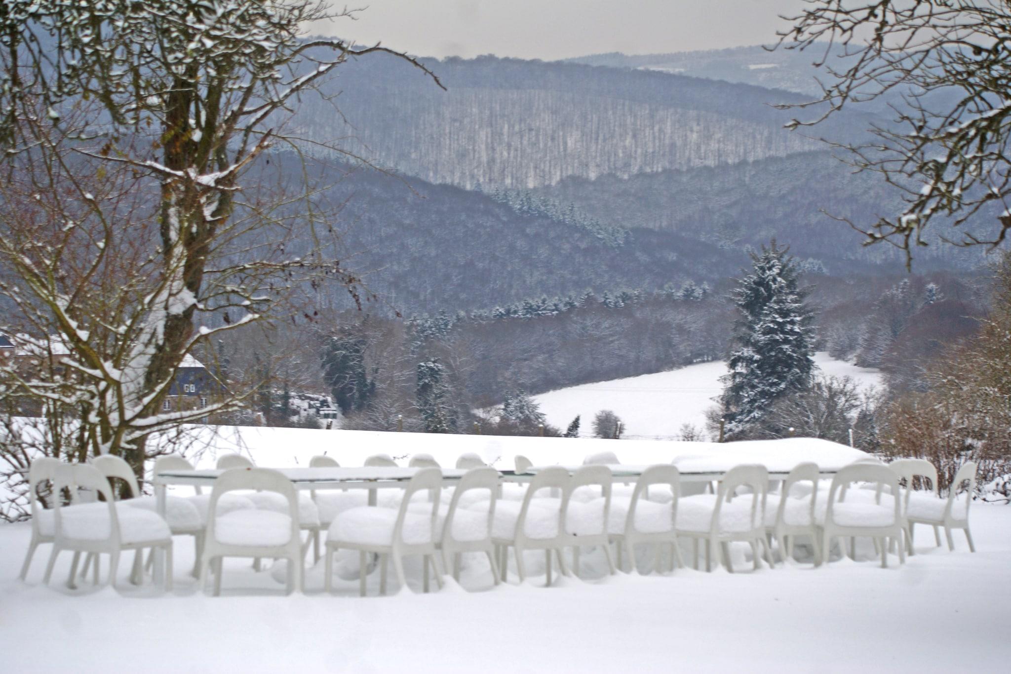 Detta rymliga semesterhus rymmer 24 till 34 gäster, perfekt för familjesammankomster, vänner eller företagsresor. Den ligger uppe på toppen av ett berg och erbjuder fantastisk utsikt över floden Lesse och Ardennernas skogar. Gästerna har närhet till floderna Almache och Marche, den charmiga bokbyn Redu och Euro Space Center. Vandringsmöjligheter finns i överflöd i Europas mest sammanhängande skog, medan stormarknader ligger bara 7 km bort. Hemmet är designat för stora grupper och har ett stort vardagsrum, en matsal med ett stort bord och ett öppet kök som är perfekt för gemensam matlagning. Utanför finns ett utomhuskök med öppen spis, terrasser i skuggan av plataner och ett privat bytorg. Parkering för 12 bilar finns på plats, med extra parkering i närheten. Husregler garanterar en lugn vistelse: inga störningar för grannar, ett strikt maximum på 34 gäster och inga högljudda personliga ljudenheter (ett internt system med HD+-skärm tillhandahålls för presentationer).
