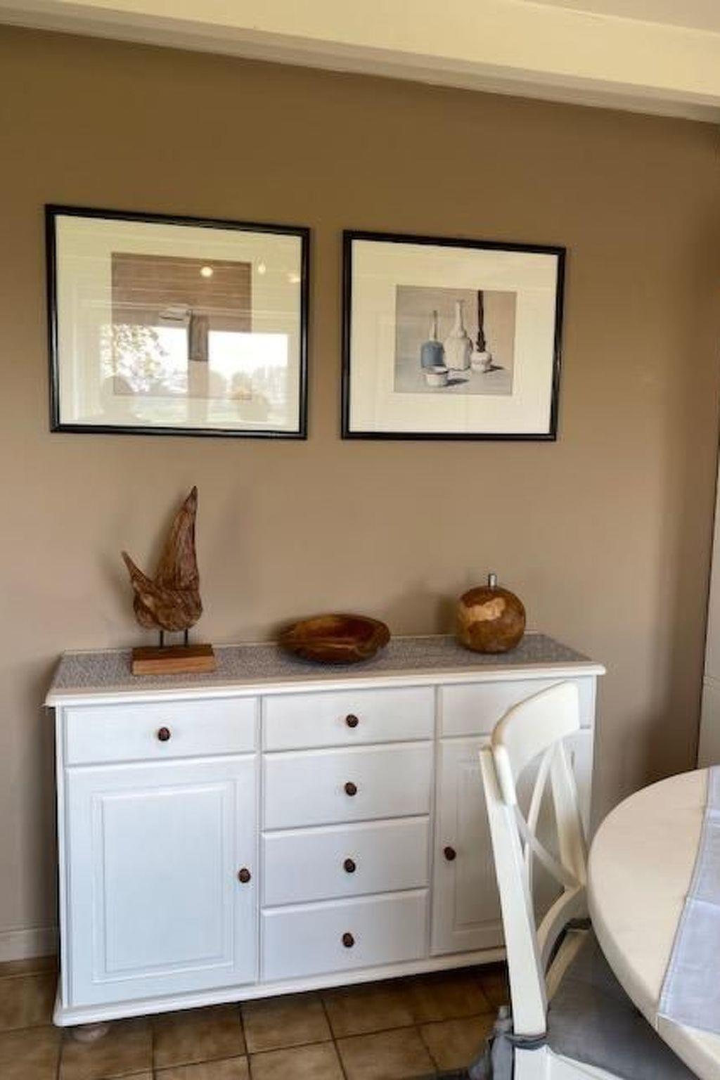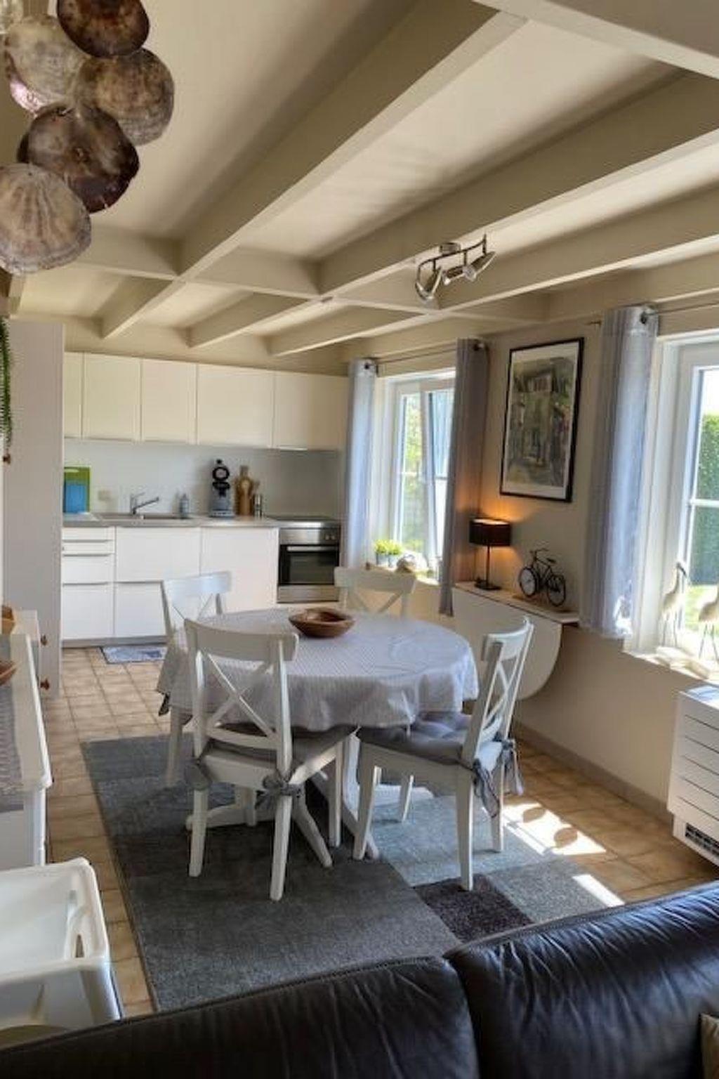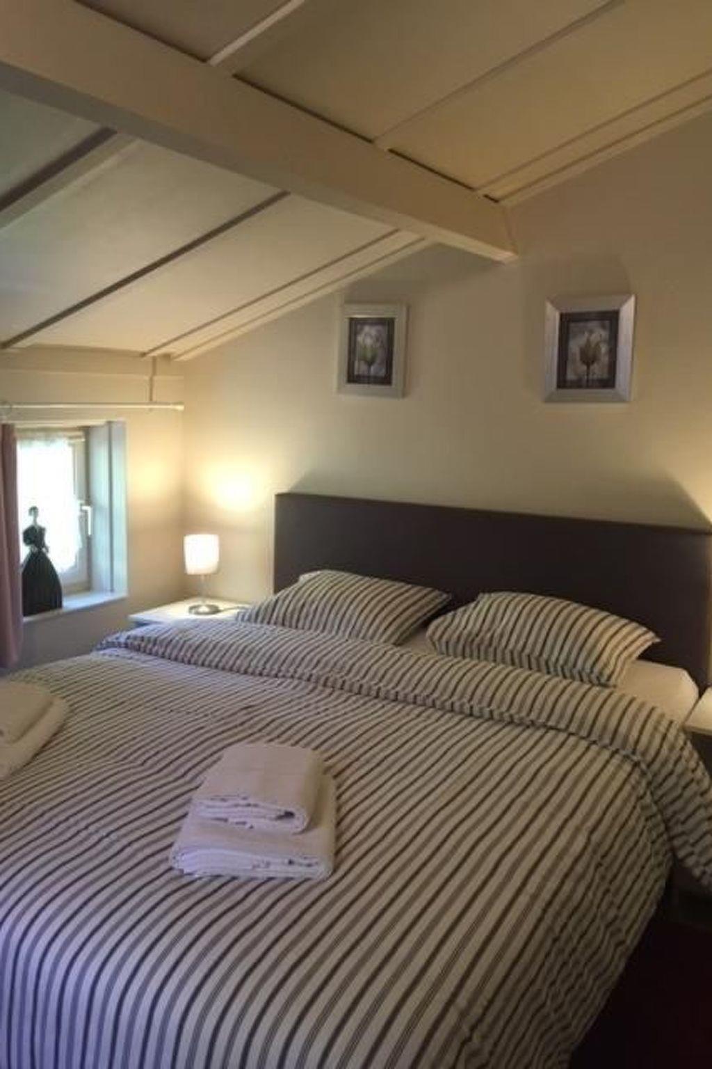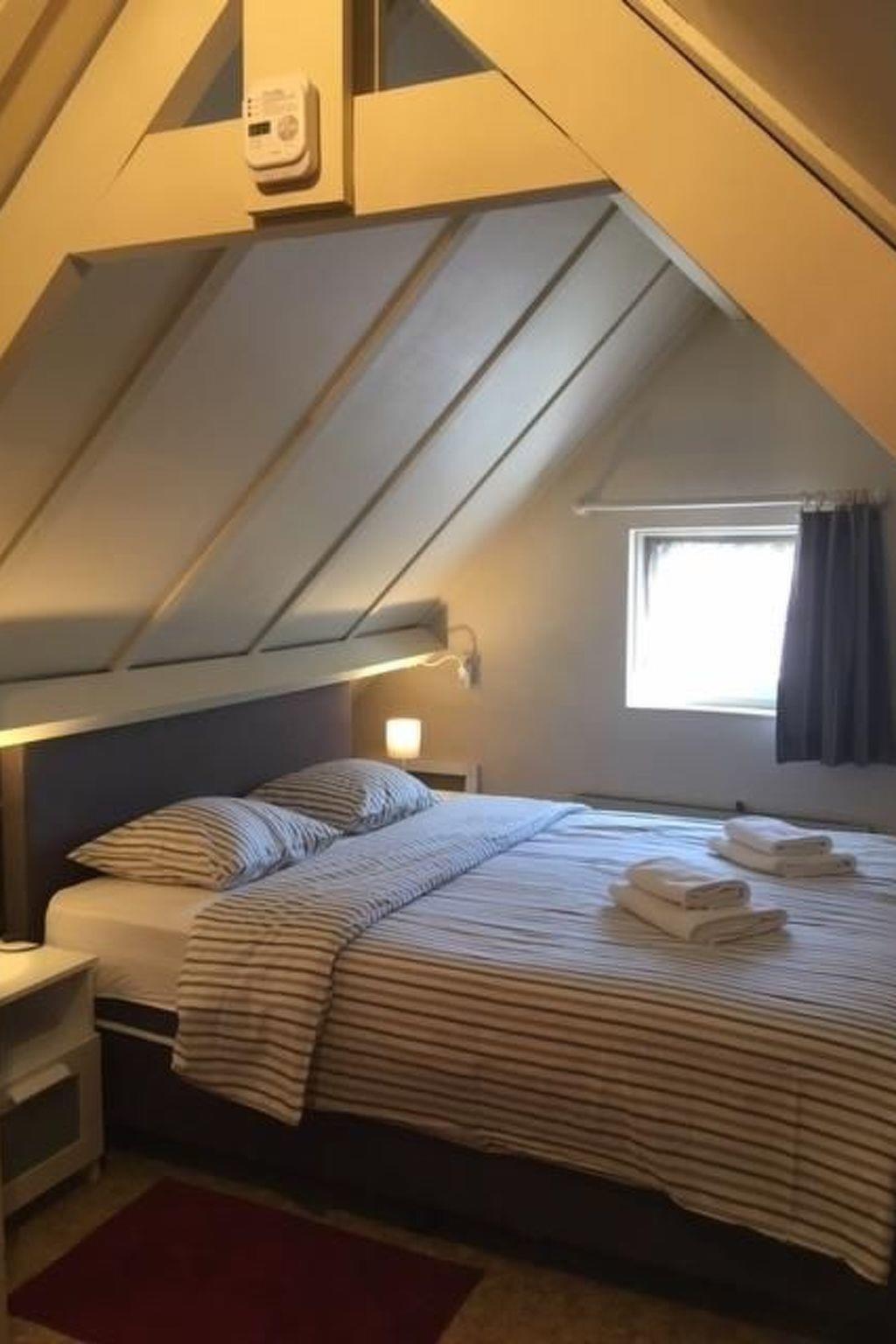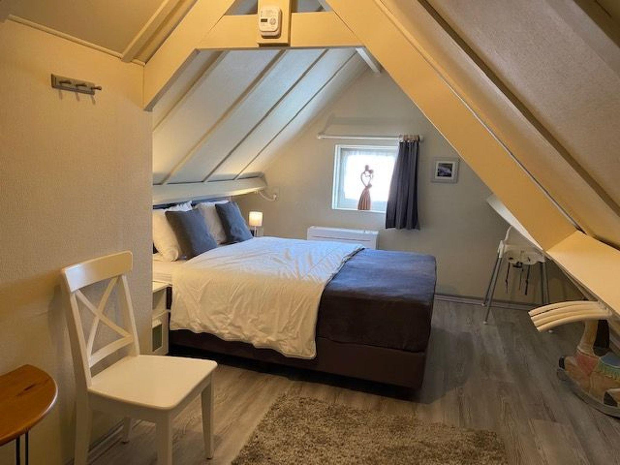 The house comprises a spacious living area with open-plan kitchen. A cosy sitting area with wood-burning stove, TV, mini stereo, books and CDs, followed by the dining area with round table. The kitchen is fully equipped with oven, microwave, induction hob, large fridge with separate freezer compartment and dishwasher, coffee machine, Senseo coffee machine, water and egg boiler, toaster, mixer and toast maker. Furthermore, everything from pots, pans, crockery, cutlery, glasses, bowls and dishes. The downstairs bedroom has a double box spring (160x200) and a wardrobe. The bathroom is equipped with a bathtub/shower, washbasin with hairdryer and toilet. Upstairs you have a room with a box spring for 2 persons (160x200) and wardrobe. For the little ones, a cot and high chair are available. All beds are equipped with pillows and duvets. It is also possible to order beds made and a set of towels.