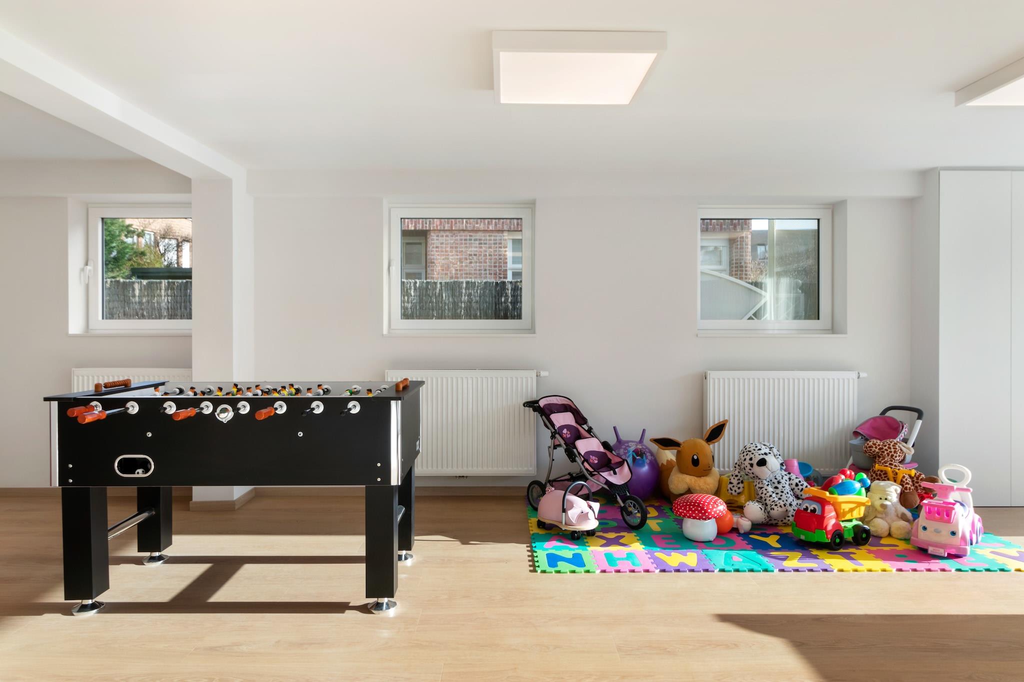 Rymlig Coastal Retreat Detta semesterhus med 5 sovrum i De Panne erbjuder komfort och bekvämlighet för familjer eller grupper av vänner. Boendet har två badrum, bastu, ett rekreationsrum med fotbollsspel och ett fullt utrustat kök, och rymmer upp till 12 gäster. Koppla av på terrassen, njut av trädgårdsmöbler och solstolar eller streama dina favoritprogram på TV med Netflix. Gott om parkering för sex fordon och en spjälsäng och barnstol för små gäster gör detta till ett praktiskt val för familjer. Husdjur är välkomna, så dina lurviga vänner kan vara med på det roliga. Strand och familjeäventyr Boendet ligger bara 200 meter från sandstranden och erbjuder enkel tillgång till promenader vid havet, simning och strandspel. Plopsaland, en familjenöjespark, ligger bara 2 km bort för en rolig dag ute med barn. Utforska staden på cyklar som finns vid huset eller njut av djurvänliga promenader längs kusten. För aktiva dagar erbjuder det omgivande området cykel- och vandringsleder att njuta av Västflanderns natursköna skönhet. Lokal mat och nödvändigheter Stormarknader, ett bageri och en slaktare ligger inom 300 meter, medan restauranger ligger bara 100 meter bort för bekväma matställen. Ta färska ingredienser till en grillfest på terrassen eller njut av lokala rätter i närheten. Kollektivtrafik och huvudvägar ger enkel tillgång till De Pannes centrum, vilket gör shopping, sightseeing och utforska den belgiska kusten enkel.