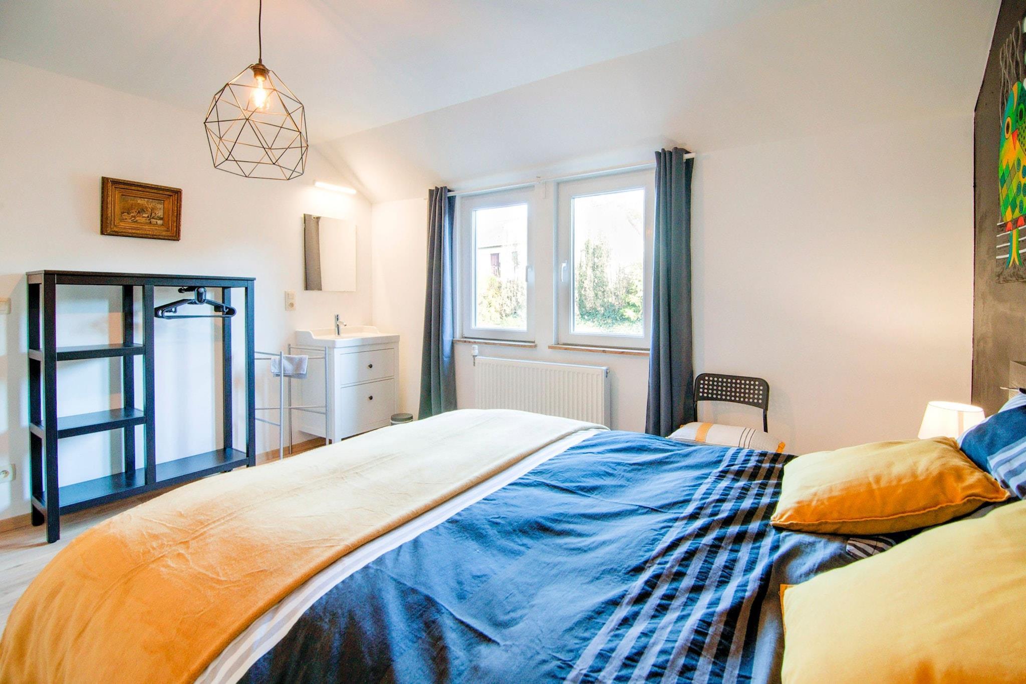 Välkommen till Chant d'Oiseau, ett mysigt semesterhus bara 3 km från hjärtat av Durbuy. Idealisk för familjer, erbjuder denna tillflyktsort i sovrum en lugn miljö med en härlig trädgård och en möblerad terrass, perfekt för att njuta av måltider eller koppla av efter en dag av sightseeing. Det berömda turisttåget som slingrar sig genom Durbuys historiska centrum ligger bara en kort resa bort, och den närliggande Ourthefloden (2 km) erbjuder möjligheter till fridfulla promenader eller kul utomhus. En stormarknad är också bekvämt belägen 3 km från hemmet för alla dina nödvändigheter. Inuti har hemmet ett fullt utrustat kök, inbjudande sovrum och en varm atmosfär. Cyklar finns tillgängliga för att utforska de natursköna omgivningarna, och en laddstation för elbilar är tillgänglig på begäran och mot en extra avgift. Observera att gästerna förväntas lämna huset så rent som de hittade det.