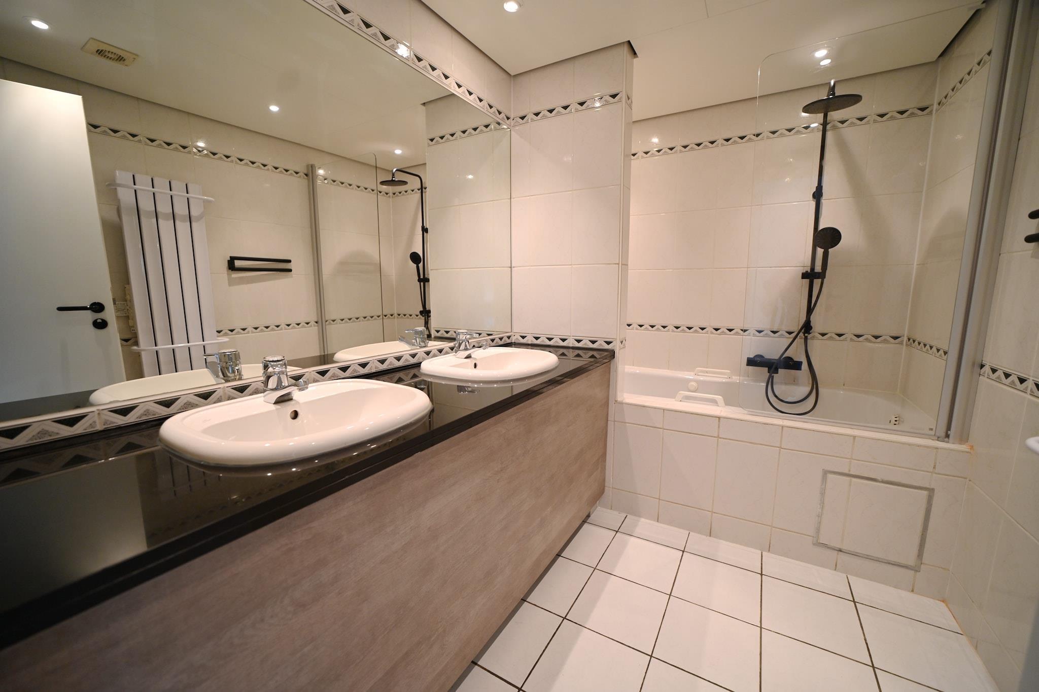 Elegant tillflyktsort i hjärtat av naturen Inbäddad i Résidence Durbuys lummiga skog, kombinerar denna rymliga lägenhet på första våningen komfort med modern design. Det inbjudande L-formade vardagsrummet har mysiga sittplatser, en gasspis, en dubbel bäddsoffa och varmt naturligt ljus. Med tre sovrum - ett med en dubbelsäng och två med två resårmadrasser (kan konfigureras som dubbelrum) - är det bekvämt värd för familjer eller grupper. Det eleganta öppna köket har en diskmaskin och en kombinerad mikrovågsugn, och två badrum (inklusive ett med bubbelbadkar) garanterar stressfria morgnar. En separat toalett ger extra bekvämlighet. Paws Welcome – Pet Adventures Await Ta med din lurviga kamrat - den här lägenheten är husdjursvänlig! Bara några steg bort erbjuder området natursköna skogspromenader och stigar längs floden, perfekta för svansviftande promenader. Utforska närliggande Bois de Petithan eller njut av en lekstund i de öppna gräsytor i Parc des Topiaires. Flera lokala kaféer välkomnar husdjur på sina uteplatser, vilket gör det enkelt att dela upplevelsen med din fyrbenta vän. Efter en dag ute kan du koppla av tillsammans på din privata terrass med utsikt över trädgården, som ligger på bottenvåningen. Ät och upptäck i Durbuy Känd som "världens minsta stad" förtrollar Durbuy med sin medeltida charm och kulinariska läckerheter. Skäm bort dig med belgiska specialiteter på Le Fou du Roy, eller smutta på lokala öl på La Brasserie Saint-Amour, både inom en kort bilresa och välkomnande av husdjur.
