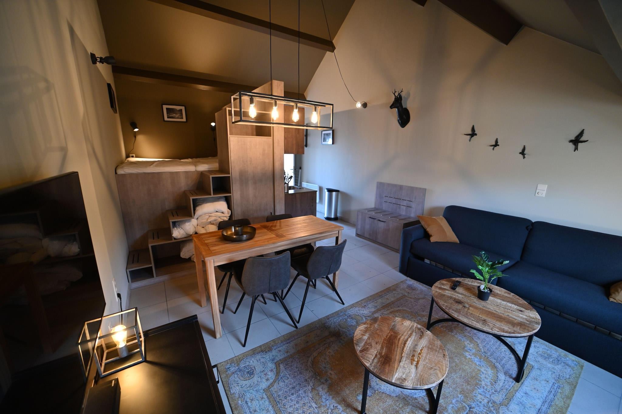 Välkommen till din varma och inbjudande studio, inbäddad i Durbuys fridfulla skogar. Denna charmiga lägenhet på första våningen är perfekt för en romantisk semester för två eller en liten familjesemester. Den har en bekväm dubbelsäng och en högkvalitativ bäddsoffa, perfekt för barn. Koppla av i det mysiga vardagsrummet med platt-TV, stämningsbelysning och en matplats för fyra. Det välutrustade köket gör det enkelt att laga dina favoritmåltider, och badrummet är en underbar plats att varva ner på efter en dags utforskande. Ta med din fyrbenta vän, eftersom denna studio är husdjursvänlig! Utomhus hittar du skogsstigar och pittoreska flodstränder perfekta för promenader eller picknick med din hund. Bege dig till Bois de Petit-Han för en skuggig promenad eller lek med din hund i de öppna gräsytorna vid floden Ourthe. Många lokala kaféer är husdjursvänliga, så ingen behöver stanna hemma. Efter en dag med skoj kan du njuta av några lugna stunder tillsammans i den gemensamma trädgården. Studioen ligger bara några minuter från Durbuys charmiga gamla stadsdel och placerar dig nära läckra restauranger som Le Clos des Récollets. för raffinerad belgisk mat eller La Vieille Ville för rustik charm och rejäla rätter. Oavsett om du kopplar av inomhus eller utforskar kullerstensgatorna och landsbygdsstigarna, erbjuder denna studio den perfekta blandningen av komfort, charm och kontakt – med gott om plats för ditt husdjur att följa med dig.