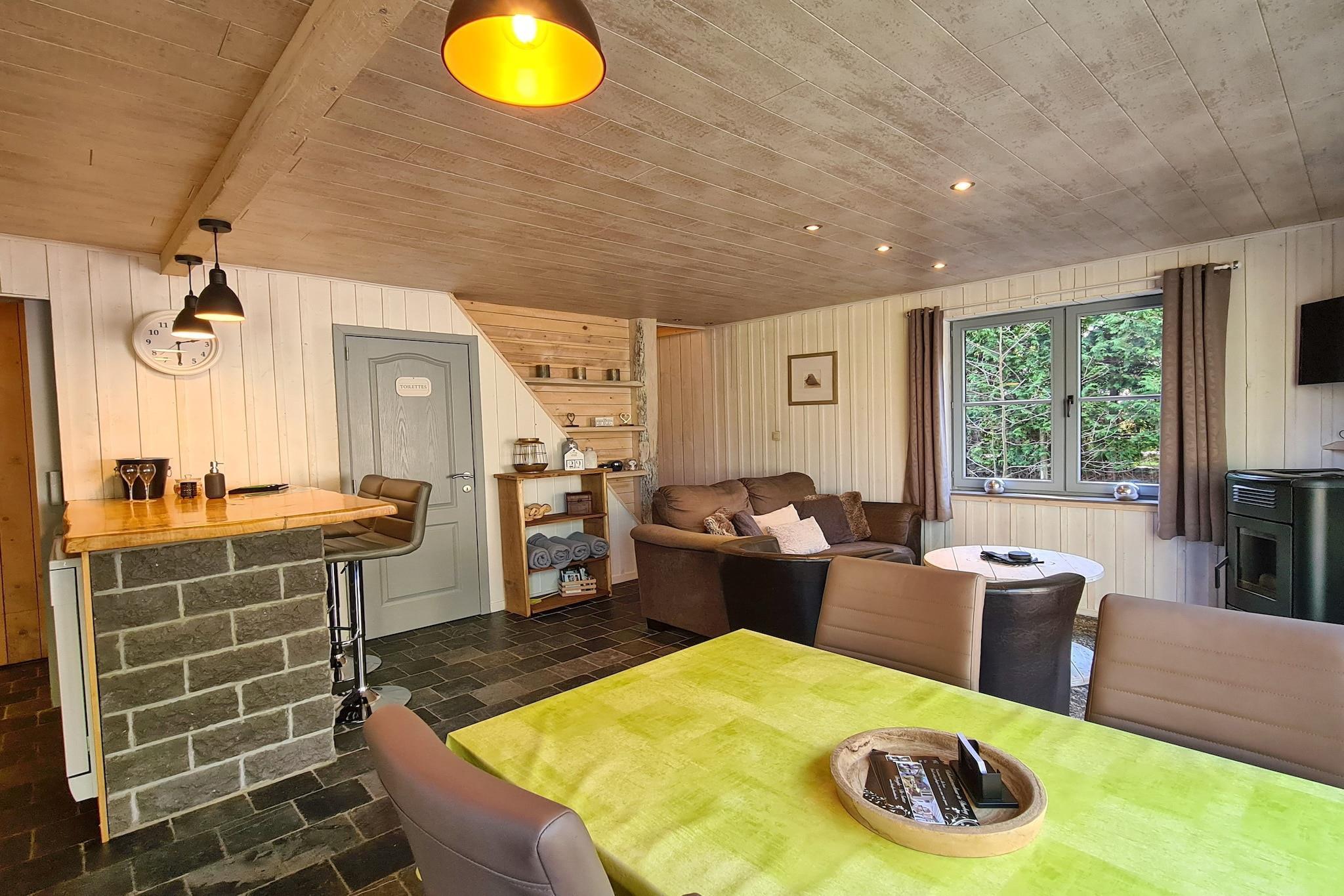 Detta trevliga semesterhus är utrustat för 4 personer och ligger mindre än 15 minuters bilresa från Durbuys centrum. Bottenvåningen består av kök och vardagsrum i öppen planlösning med stora fönster med utsikt över trädgården och grillplatsen. Köket är välutrustat (ugn, vitrohäll, mikrovågsugn, diskmaskin) och vardagsrummet har en platt-TV och en pelletskamin. Två sovrum på första våningen, ett med dubbelsäng och ett med 2 enkelsängar, samt ett badrum med dusch. !Säng- och handdukar och energi ingår ej! Det intilliggande huset BE-6940-337 från samma ägare är lämpligt för 8 personer, detta är ett utmärkt kombinationshus med denna stuga för 2 familjer.