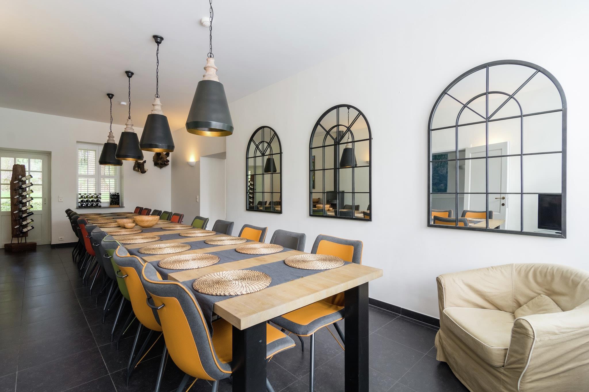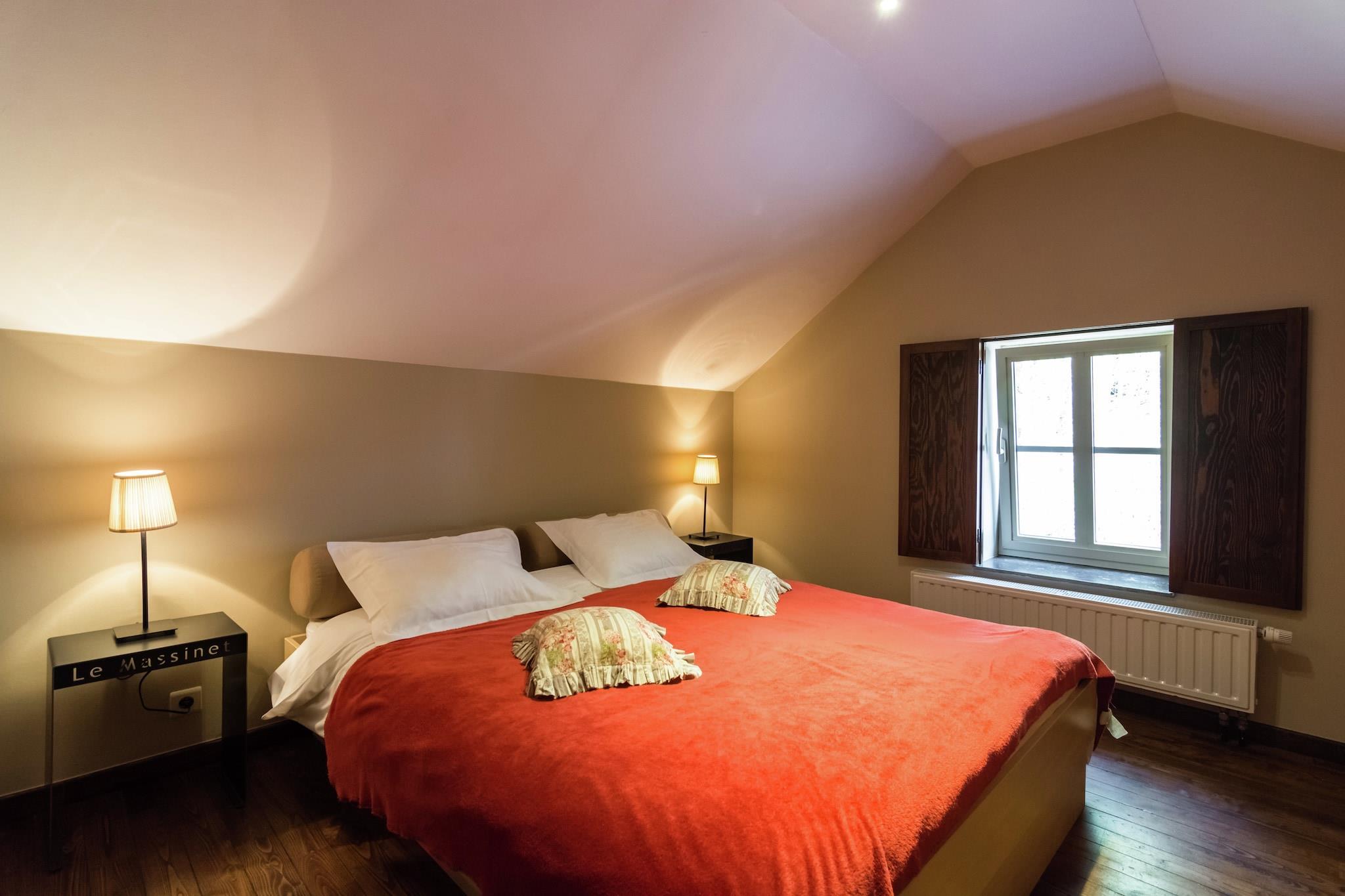 Beläget i en lummig, kuperad region mellan Bouillon och Dinant, är detta rymliga semesterhus med 9 sovrum i Gedinne perfekt för 18 gäster, oavsett om du träffas med storfamiljen eller flera mindre familjer. Njut av lyxen med en privat bastu och bubbelbad, med 10 gratis wellness-polletter per dag för att hjälpa dig varva ner efter en dag av äventyr. Området är omgivet av skogar och ängar och är idealiskt för vandring, mountainbike och kajakpaddling på floden Ourthe. Stadens centrum (4 km) erbjuder butiker och restauranger för en trevlig utekväll. Tillbaka vid huset, koppla av vid den öppna spisen utomhus, njut av en grillfest på terrassen eller sitt lugnt vid dammen med en bok och ett glas vin. Hemmet har centralvärme, en spjälsäng och barnstol för de små (på begäran) och privat parkering. Med tågstationen bara 600 m bort är denna fridfulla oas både tillgänglig och avskild – perfekt för en föryngrande flykt från Ardennerna.