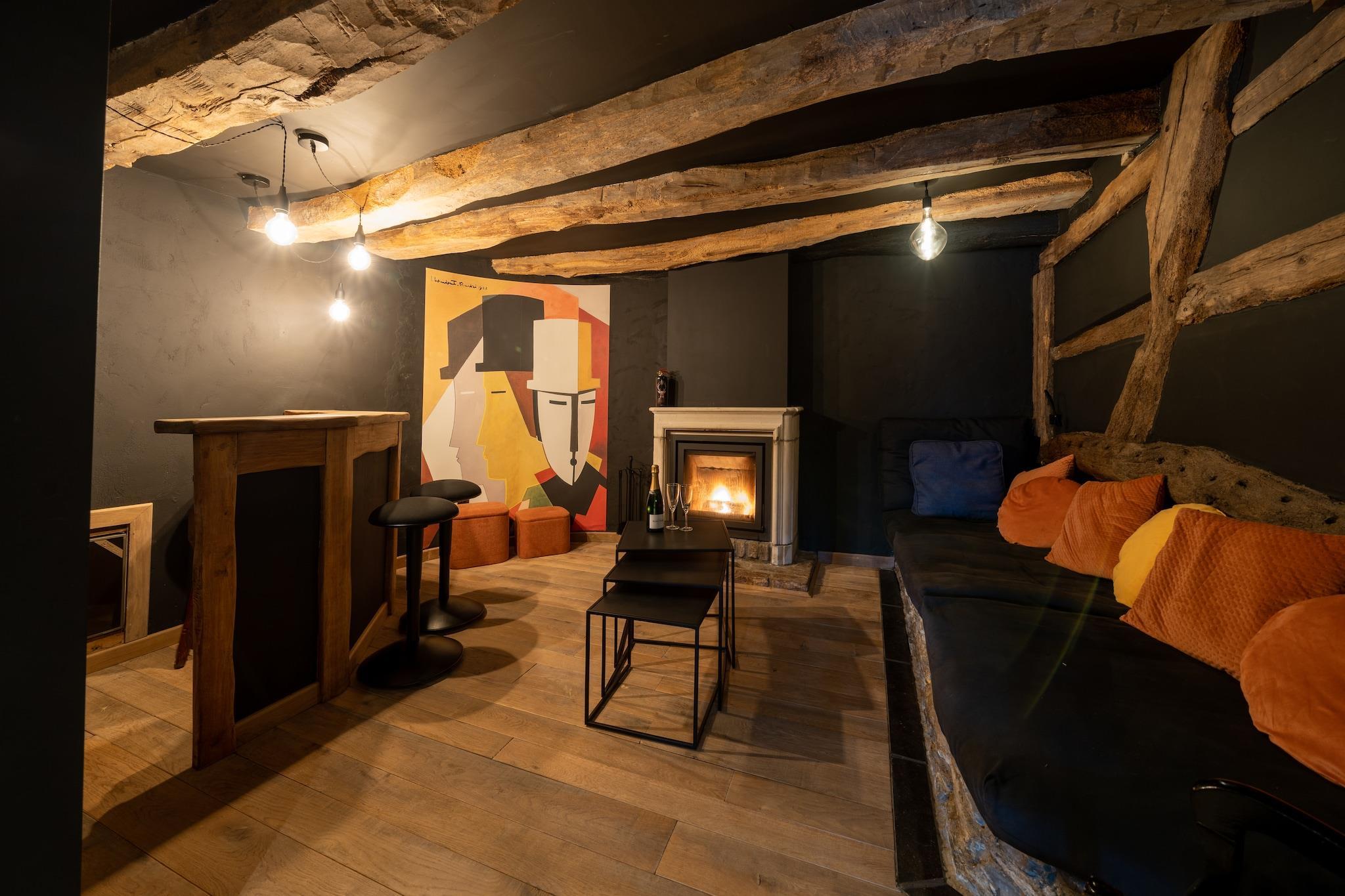 Gå in i det förflutna med detta vackert renoverade semesterhus från 1600-talet i Gedinne, där autentisk charm möter modern lyx. Med 5 sovrum tar denna rymliga tillflyktsort bekvämt emot upp till 9 gäster, vilket gör den idealisk för stora familjer eller grupper. Njut av den privata bastun, centralvärmen och den vedeldade spisen medan du kopplar av i hjärtat av Ardennerna. Huset har ett fullt utrustat kök, en stor matplats och två mysiga vardagsrum. Barnen kommer att älska lekrummet och lekhagen, medan vuxna kan koppla av på den överbyggda terrassen eller i den inhägnade trädgården med en grill. Ytterligare bekvämligheter inkluderar en tvättmaskin, parkering och WiFi. En spjälsäng och barnstol finns tillgängliga på begäran. Observera: laddning av elfordon laddas separat när det är tillåtet. Beläget bara 300 m från skogen och ett stenkast från centrum och restauranger, är detta hem perfekt beläget för vandring, cykling och utforska Euro Space Center (10 km), Redu bokby (13 km) och Bouillon (30 km). Oavsett om du smuttar på vin i trädgården eller utforskar Ardennerna, erbjuder detta hem en tidlös och lugn tillflyktsort.
