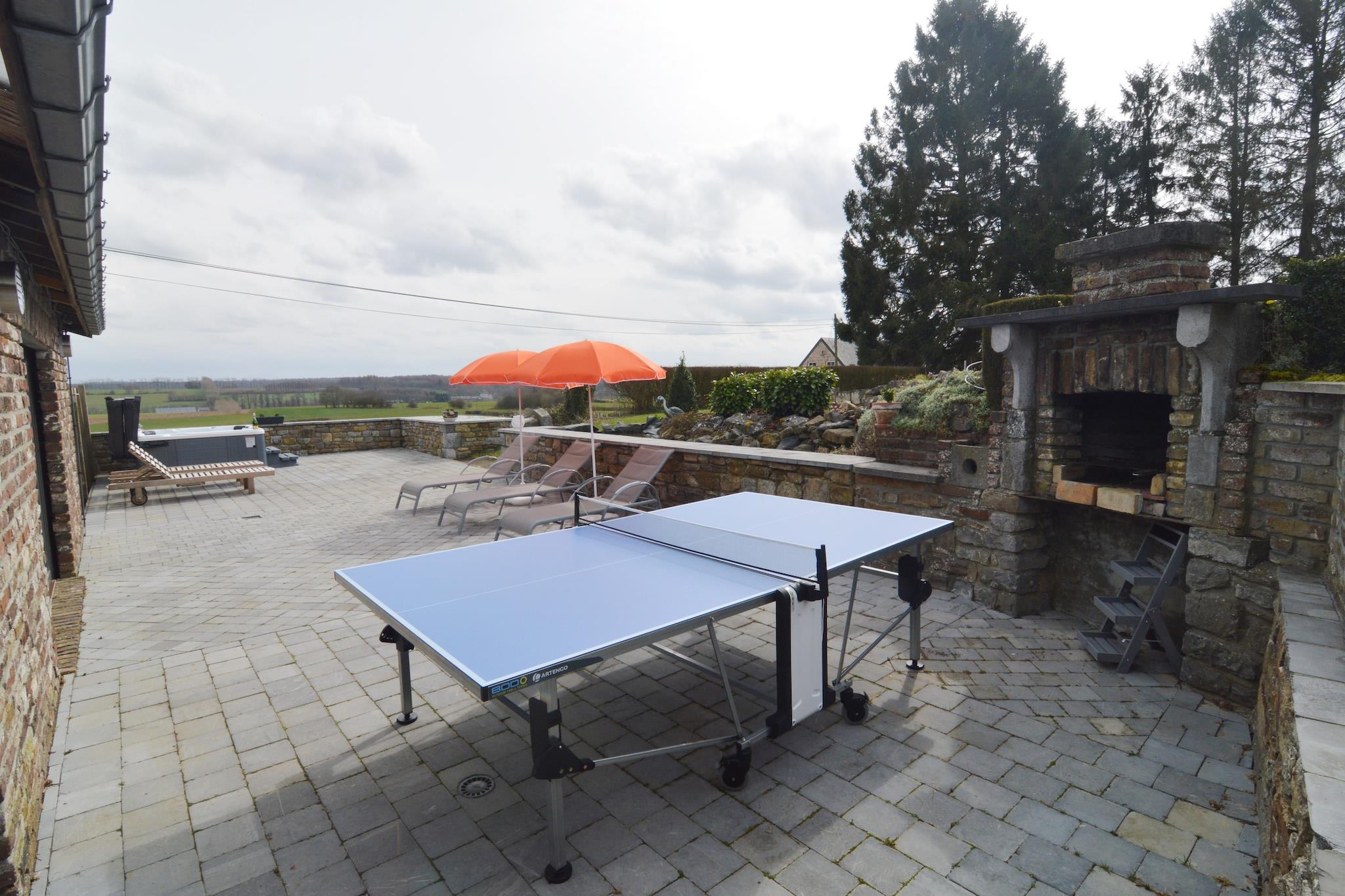 Upplev lantlig lyx i detta semesterhus med 4 sovrum i Goesnes, perfekt för familjer på upp till 8 gäster. Njut av en privat inomhuspool, bubbelbad och fantastisk utsikt över terrassen. Av lugnsskäl hyrs inte bostaden ut till grupper av ungdomar. Huset ligger på två våningar och har ett mysigt vardagsrum, matplats och ett välutrustat kök med bar, perfekt för gemensamma måltider och avkopplande kvällar. Utomhus, varva ner vid dammarna, elda upp grillen eller utmana din grupp på en omgång bordtennis. Alla sängar är bäddade vid ankomst, så att du kan bosätta dig stressfritt. Området ligger på landsbygden i den belgiska Ardennerna och är perfekt för vandring och naturstigar. En barnsäng och barnstol finns, vilket gör det till en familjevänlig tillflyktsort. Oavsett om du blötlägger i bubbelpoolen eller njuter av utsikten från terrassen, erbjuder detta hem en fridfull och elegant tillflyktsort.
