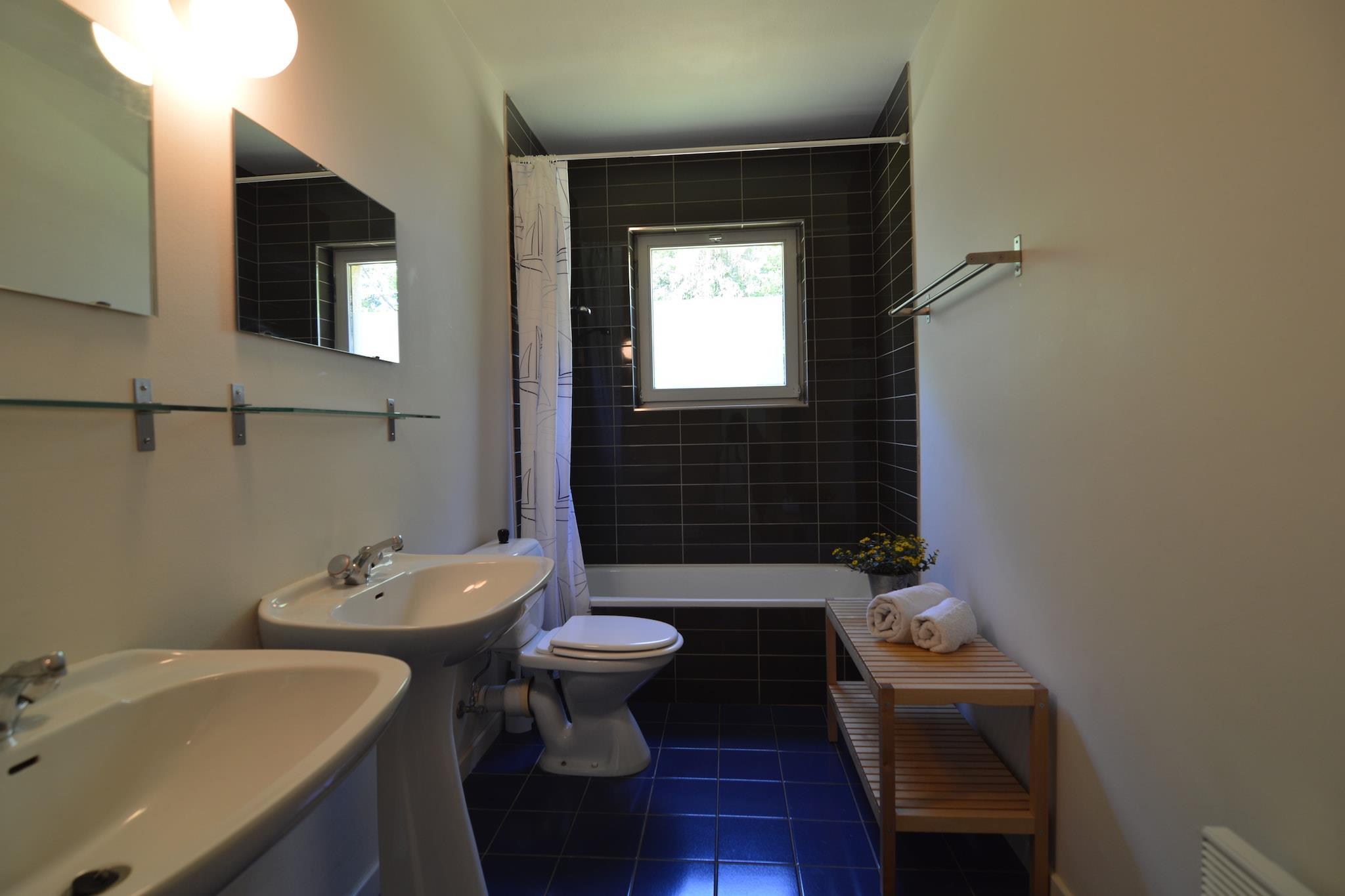 Bottenvåningen: (Entré, allrum) På våning 1: (Korridor, Vardagsrum(Braskamin(trä), DVD-spelare), öppet kök(matbord, spis(Spis med 4 kokplattor, keramisk), ugn, mikrovågsugn, diskmaskin, kyl och frys), sovrum(2x enkelsäng(90 x 200 cm), 2x Utdragssäng 1 pers.(90 x 200 cm)), sovrum(Dubbelsäng eller 2 enkelsängar), badrum(badkar med dusch, 2x handfat, toalett ), balkong) TV(platt-tv), Netflix, kaffebryggare, mikrovågsugn, dusch eller badkar, värme, värme, terrass, terrass, trädgård, trädgård(delas med andra gäster , anlagd trädgård, delvis inhägnad, 9000 m2), trädgårdsmöbler, grill(delas med andra gäster ), parkering, sandlåda, lekplats, bordtennis, bordtennis, barnstol, sällskapsspel