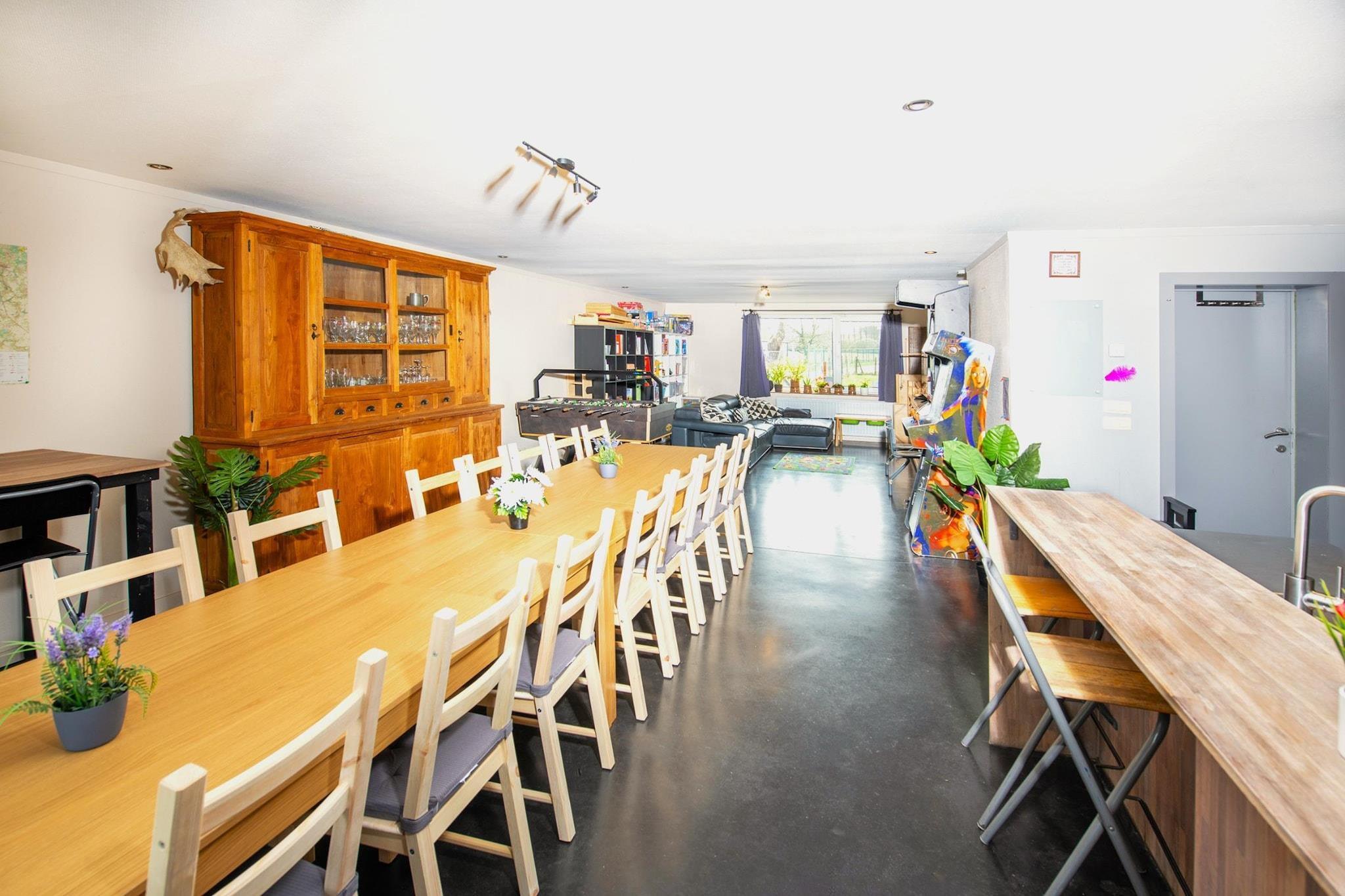 Välkommen till Het Hol van de Vos, ett enplanshus i Heers där upplevelse är nyckeln! Huset är den perfekta platsen för grupper på upp till 8 personer som söker mysighet, avkoppling och underhållning. Det finns ett stort öppet kök, fullt utrustat med bland annat diskmaskin, ugn och kaffebryggare. Vardagsrummet har en bekväm sittgrupp med utsikt över alpackorna, en TV med streamingtjänster och barspel, inklusive dart, bordsfotboll och en arkadspelsdator med 2100 retrospel från 80- och 90-talen, perfekt för timmar av nöje. Badrummet består av badkar, dusch, handfat och toalett, och det finns en extra toalett och handfat i det extra rummet. Det första sovrummet har två våningssängar och en dubbelsäng. Det andra sovrummet har två enkelsängar. Det finns en tvättmaskin i hallen, vilket är praktiskt för längre vistelser. Parkering är enkel framför dörren. Utanför finns en täckt relaxavdelning, komplett med en autentisk pizzaugn och grill, perfekt för långa sommarkvällar fulla av kulinarisk trevlighet. För barnen finns en renoverad sandlåda i anslutning till terrassen. Gården ligger på en gata med låg trafik, så att de kan leka utomhus säkert. För extra skoj finns det möjlighet att hyra 20 träspel och gokart på plats. På gården finns höns, kaniner, kalkoner, alpackor, grisar och ankor, vilket gör din vistelse ännu trevligare och låter dig beundra djuren på nära håll! Att mata djuren är en ytterligare aktivitet som kan bokas på plats. Heers, en pittoresk kommun i den bördiga regionen Haspengouw, är strategiskt belägen mellan Sint-Truiden och Tongeren-Borgloon, nära gränsen till Vallonien. Landskapet, med sina böljande kullar, är rikt på fruktträdgårdar, vingårdar, slott och charmiga kapell. Som en del av landskapsparken Hart van Haspengouw erbjuder Heers en idealisk miljö för vandrare och cyklister som vill njuta av säsongens skönhet och lokala hantverk. Två vandringsleder passerar till och med direkt förbi Smishoeve. Ytterligare tjänster kan bokas med ägaren: frukost, bubbelpool och bastu.