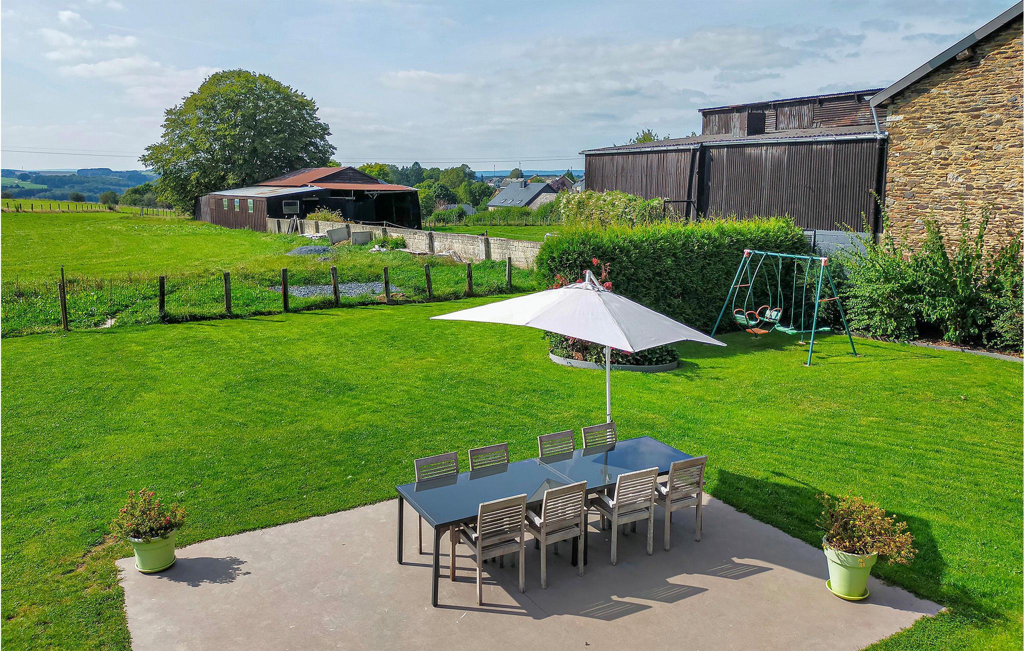 Du är på semester här i de höga Ardennerna, i en by nära Houffalize. Köket och den mysiga matsalen med vedspis är öppna mot varandra. Bottenvåningen har ett stort vardagsrum är med trevlig sittgrupp, TV och ett rekreationsrum med bordtennis, biljard och babyleksaker. Ett sovrum med tre enkelsängar ligger precis intill. På övervåningen finns tre rymliga sovrum och två badrum. Ett av sovrummen är utrustat som ett familjerum med flera sängar. Den inhägnade trädgården med bekväm terrass erbjuder en vacker utsikt över Ardennerna-kullarna. I närheten ligger Nisramont, där du kan göra en trevlig vandring. Houffalize är känt för världsmästerskapen i mountainbike: en toppdestination för den sportiga cyklisten. Inom en radie av 25 km ligger La Roche med sitt slott, grottorna i Hotton och bryggeriet La Chouffe. Det här boendet rekommenderas särskilt för sportiga familjer och grupper av vänner.