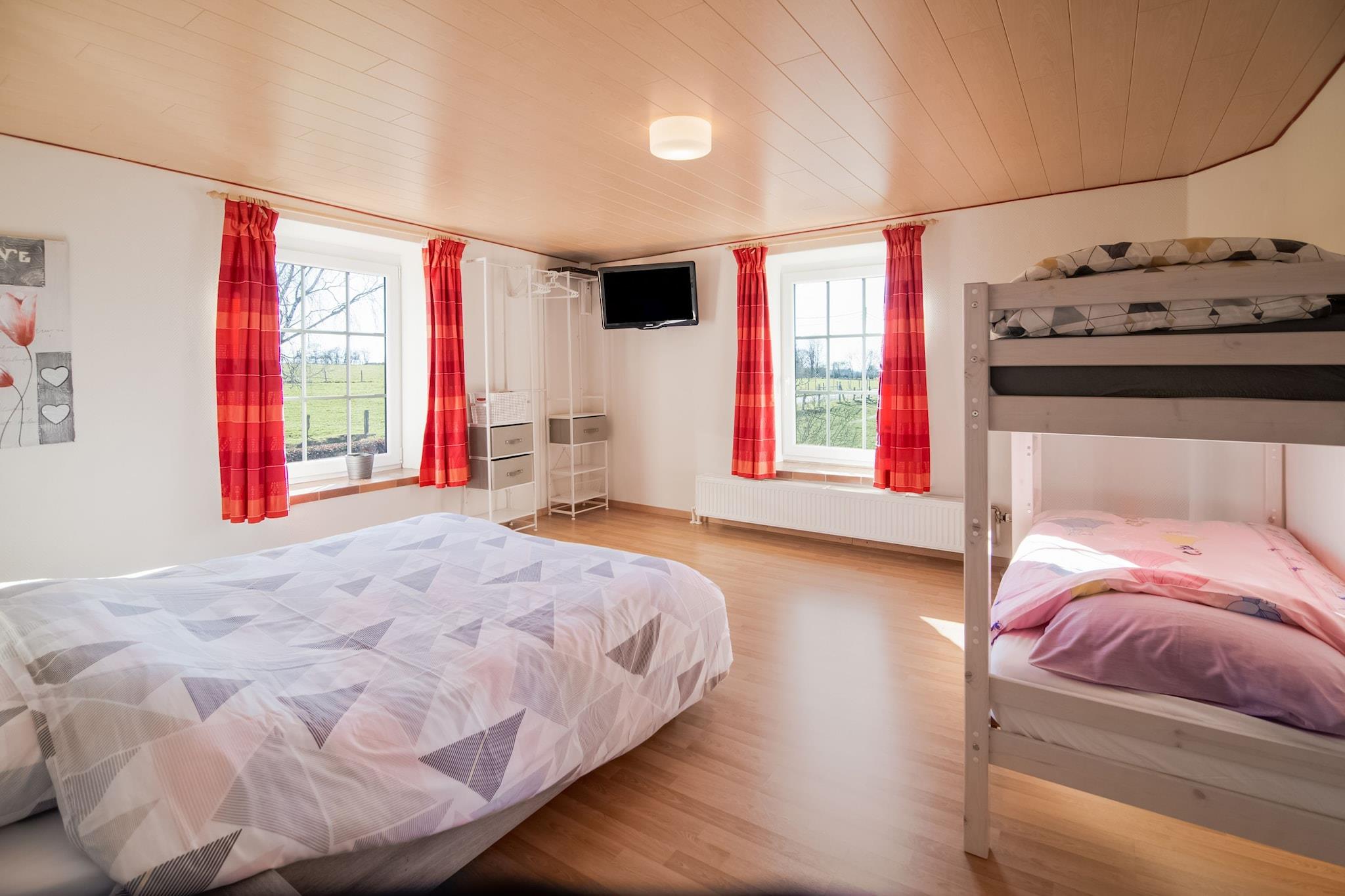 Välkommen till Chez Cyrille, en charmig bondgård inbäddad på den fridfulla landsbygden i Houffalize, Luxemburg, Belgien. Omgiven av böljande åkrar och naturens mjuka ljud, inbjuder denna mysiga tillflyktsort dig att vakna upp till kors och kvittrande fåglar, en sann lantlig fröjd. Hemmet har en vacker trädgård och en drömsk möblerad uteplats, perfekt för att koppla av, äta middag utomhus eller fånga vykortsvärda ögonblick. Inuti kan du njuta av komforten med WiFi, en tvättmaskin och centralvärme för att hålla saker varm och mysig året runt. Det välutrustade köket gör hemlagad mat till en bris, och utomhusbekvämligheter som en grill, terrass och lummig gräsmatta bidrar till charmen. En spjälsäng och barnstol finns tillgängliga för de små, vilket gör detta till en perfekt familjevänlig tillflyktsort. Utforska de natursköna omgivningarna till fots eller på cykel, eller besök närliggande städer som Vellereux, Bertogne och Compogne. Floden Ourthe, bara 1 km bort, är idealisk för fiske eller en lugn promenad längs floden. Barn kommer att älska gungställningen, medan vuxna kan varva ner på trädgårdsmöblerna med en drink i handen.