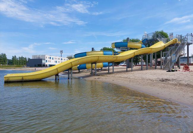 The Comfort Chalet for 4 people at Holiday Park Klein Strand offers a pleasant and practical base for a relaxing stay. The chalet has two bedrooms and is furnished with a cosy living area and an open kitchen that includes, among other things, a microwave. The bathroom is equipped with a shower, toilet and washbasin. Outside, you can enjoy a spacious terrace with garden furniture, located on a plot of at least 125 m²..