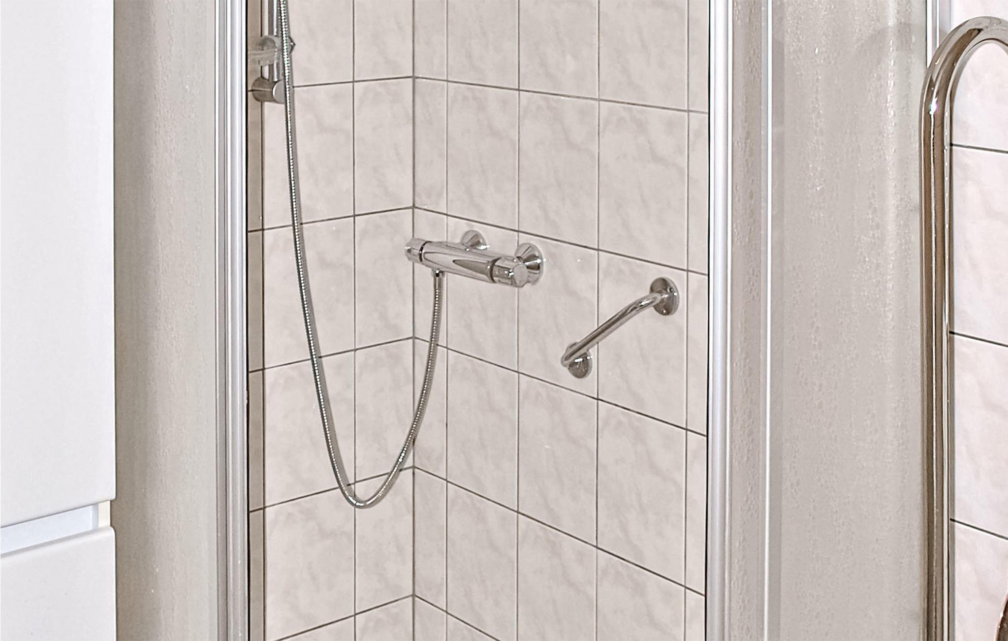 Badrum (nr. 2) - WC: Varmt och kallt vatten. Dusch