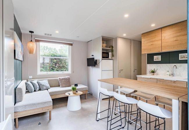 Holiday home Family PL-82 is located on the small-scale holiday park Papillon Kinrooi in Belgian Limburg, close to the Maasplassen and surrounded by tranquillity and nature. This spacious accommodation is ideal for families or small groups who want to enjoy comfort, privacy and a green environment.