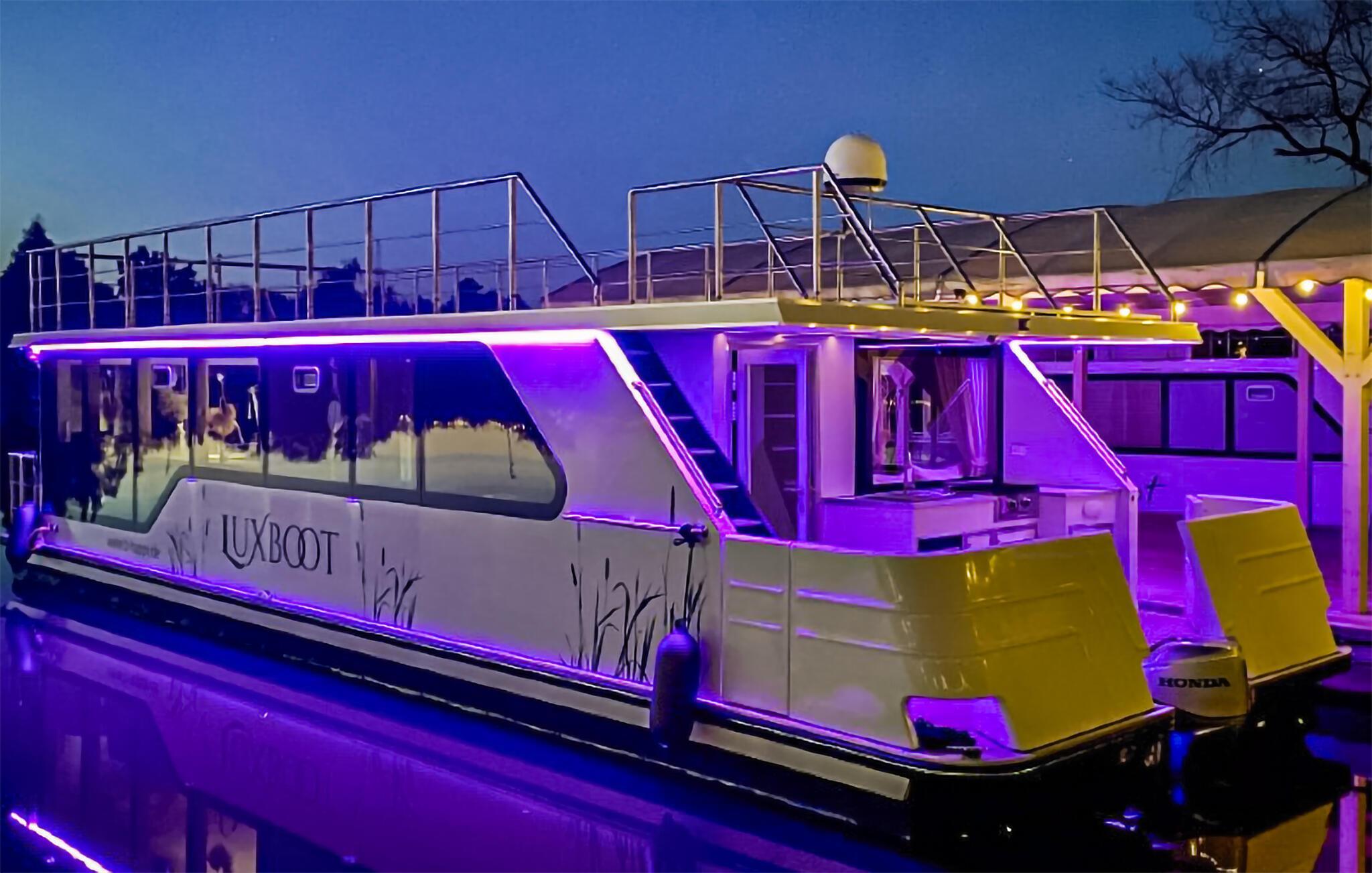 Njut av denna lyxiga husbåt med en magnifik takterrass tillsammans med din familj.