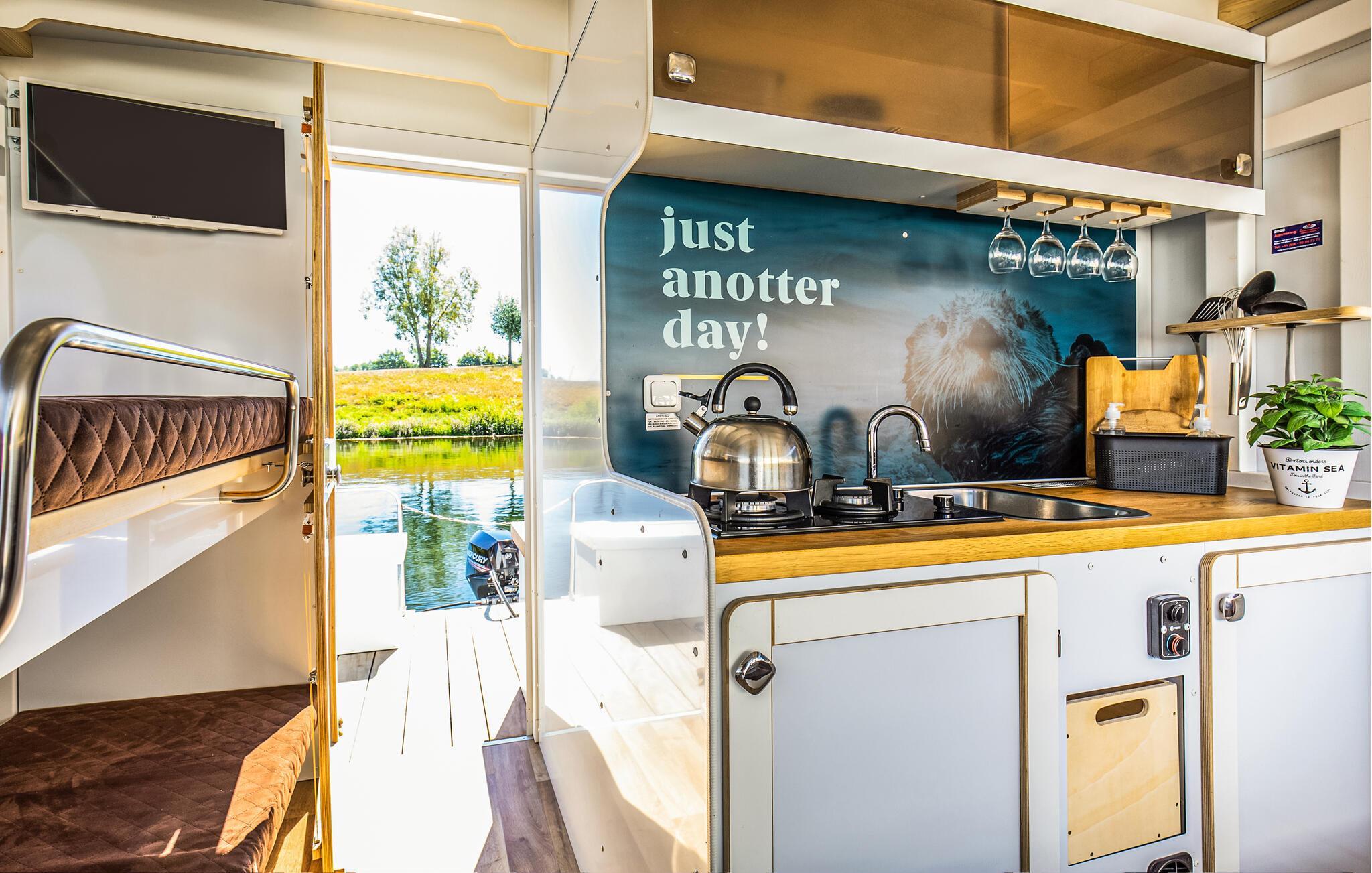 Välkommen till denna vackra husbåt, en semester som du säkert kommer att minnas länge och som lovar dig avkoppling. Upptäck den trevliga inredningen och den tilltalande atmosfären i ett rum med panoramautsikt över vattnet och hamnen. Här finns allt ni behöver för att laga mat, äta, leka och koppla av.