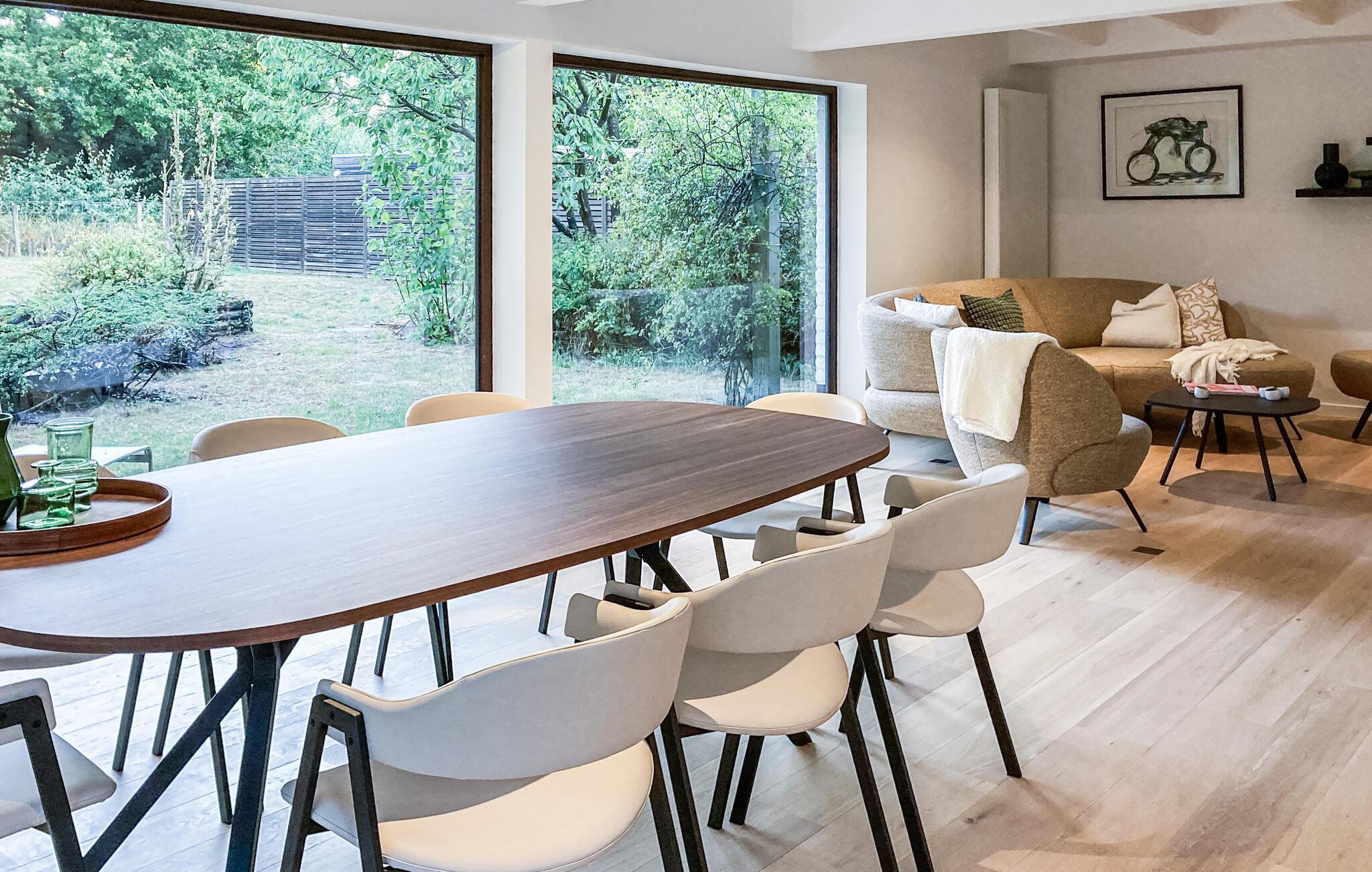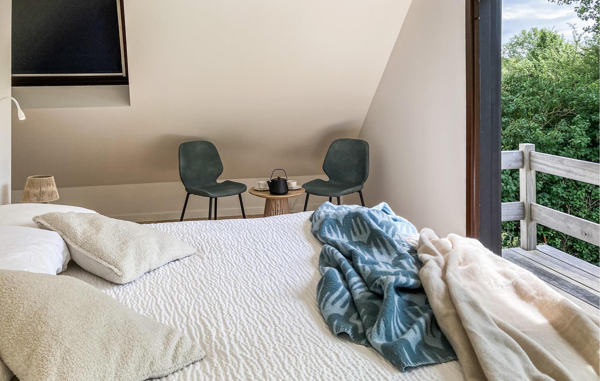 Upplev avkopplande dagar i ditt moderna och inbjudande semesterhus, som erbjuder dig den perfekta miljön för din nästa semester. Det ljusa vardagsrummet med stora fönster kombinerar vardagsrummet, matplatsen och köket för att skapa en öppen planlösning. Slå dig ner i den eleganta soffan, läs en bok eller prata med familj eller vänner. Det eleganta matbordet med bekväma stolar inbjuder dig att njuta av måltider tillsammans. I det öppna, ljusa köket med frukostbar kan du tillaga dina favoriträtter i en avslappnad atmosfär.