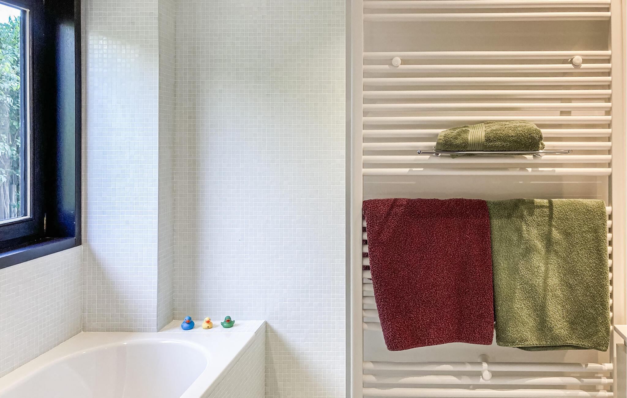 Badrum (nr. 1) - Varmt och kallt vatten. Handdusch, badkar och dusch