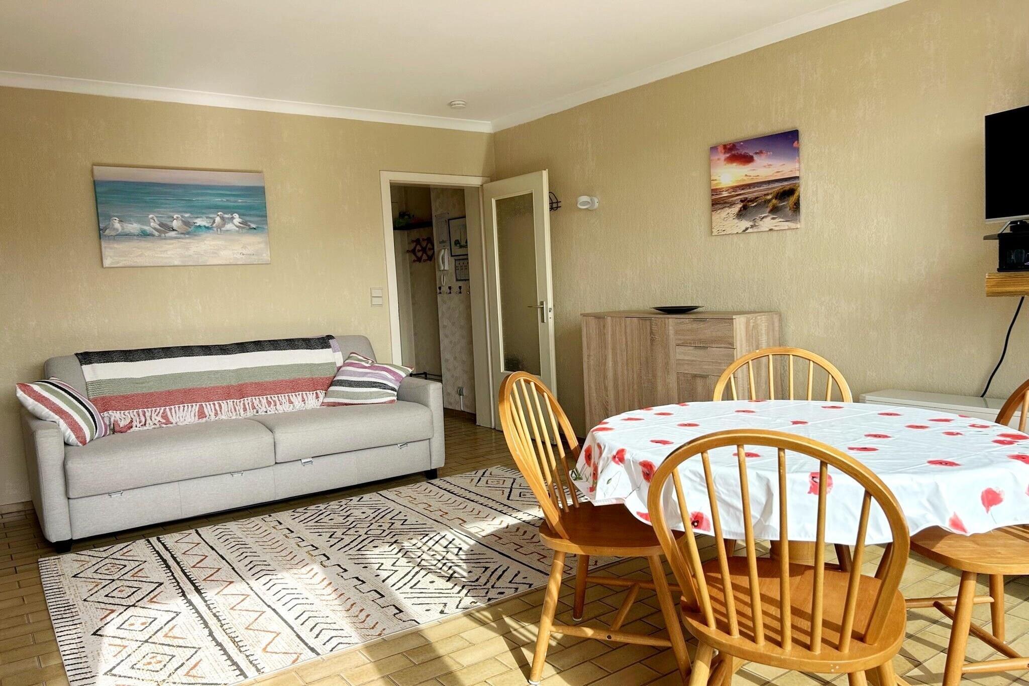 Välkommen till ditt charmiga gömställe på femte våningen, där det lugnande ljudet av vågor och det varma morgonsolljuset väntar. Vid inträdet möts du av en inbjudande entréhall som leder till ett omsorgsfullt utformat duschrum med handfat och en praktisk toalett. Vardagsrummet är mysigt och anpassningsbart med en mjuk bäddsoffa (1,60 m) för vuxna och en mysig bäddsoffa (1,10 m) perfekt för barn, vilket skapar förutsättningar för familjesammankomster eller lekfulla kvällar under stjärnorna. Bara en kort promenad från den vackra sandstranden vid Oostduinkerke-stranden och bara 5 minuter från Baldus-stranden, är detta utmärkta läge perfekt för soliga dagar vid stranden. För extra spänning ligger den berömda Plopsaland De Panne bara 7,7 km bort, vilket lovar nöje för alla åldrar. Denna oas vid havet kommer med inkluderande förmåner som kallvattenförbrukning och slutstädning, plus att husdjur är tillåtna, vilket gör den perfekt för en minnesvärd semester. I hjärtat av denna studio finns ett klassiskt kök, en kulinarisk oas utrustad med spis och ugn, elektrisk spis, kyl-frys och mikrovågsugn. Njut av dina skapelser eller njut av morgonkaffet på den lilla balkongen, som erbjuder en härlig sidoutsikt över det glittrande havet. Med elvärme som ökar komforten är detta mysiga utrymme utformat för avkoppling efter en dags strandsafari. Observera att förbrukning av el, värme, varmvatten och kallvatten inte ingår och kommer att dras av från din deposition. Förbrukningen tenderar att vara högre under vintermånaderna. (Maximaltaxa för förbrukning är: 7,25 EURO/m³ vatten – 0,64 EURO/kWh el (dag) – 0,44 EURO/kWh el (natt) – 1,46 EURO/m³ gas).