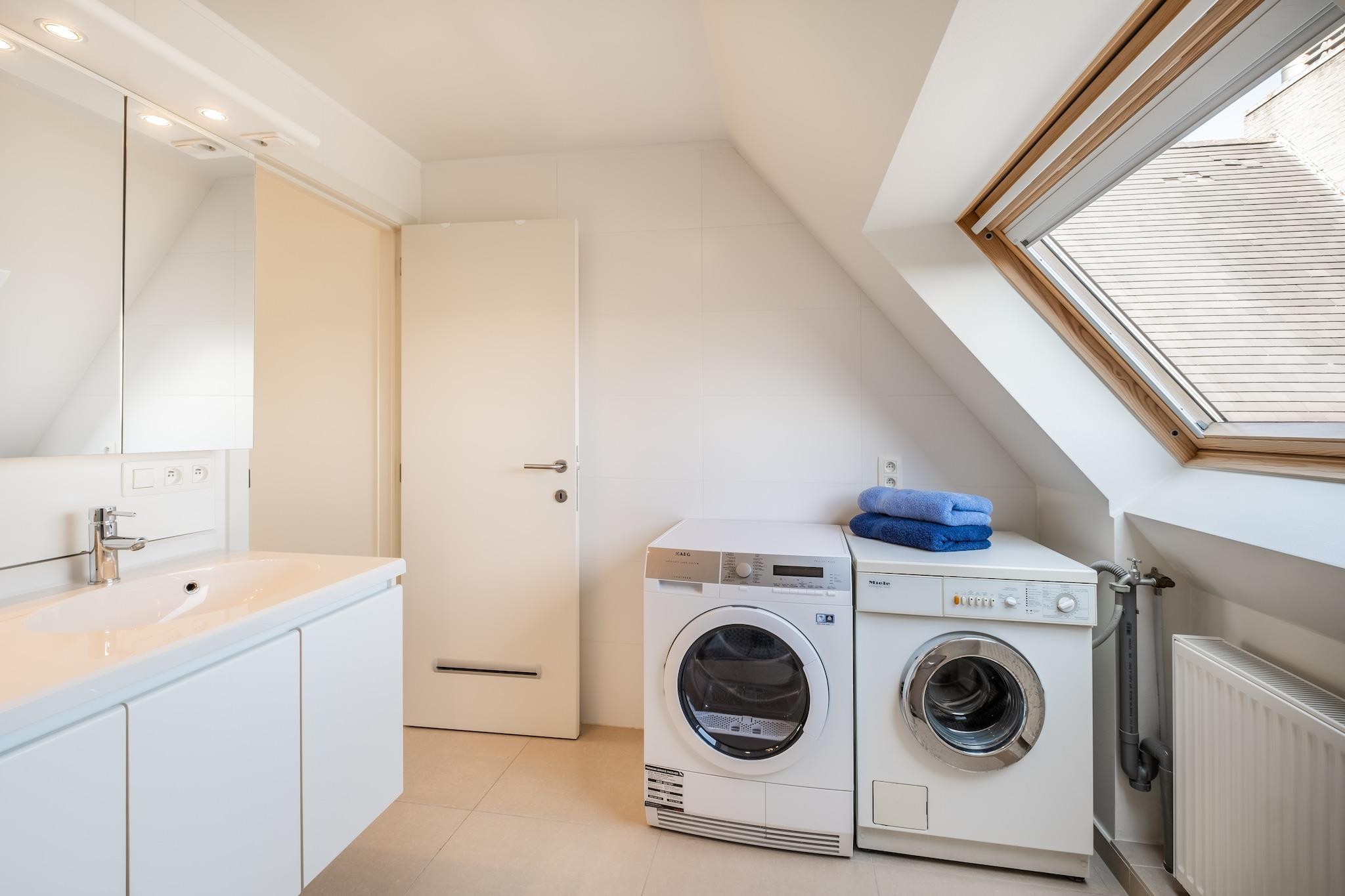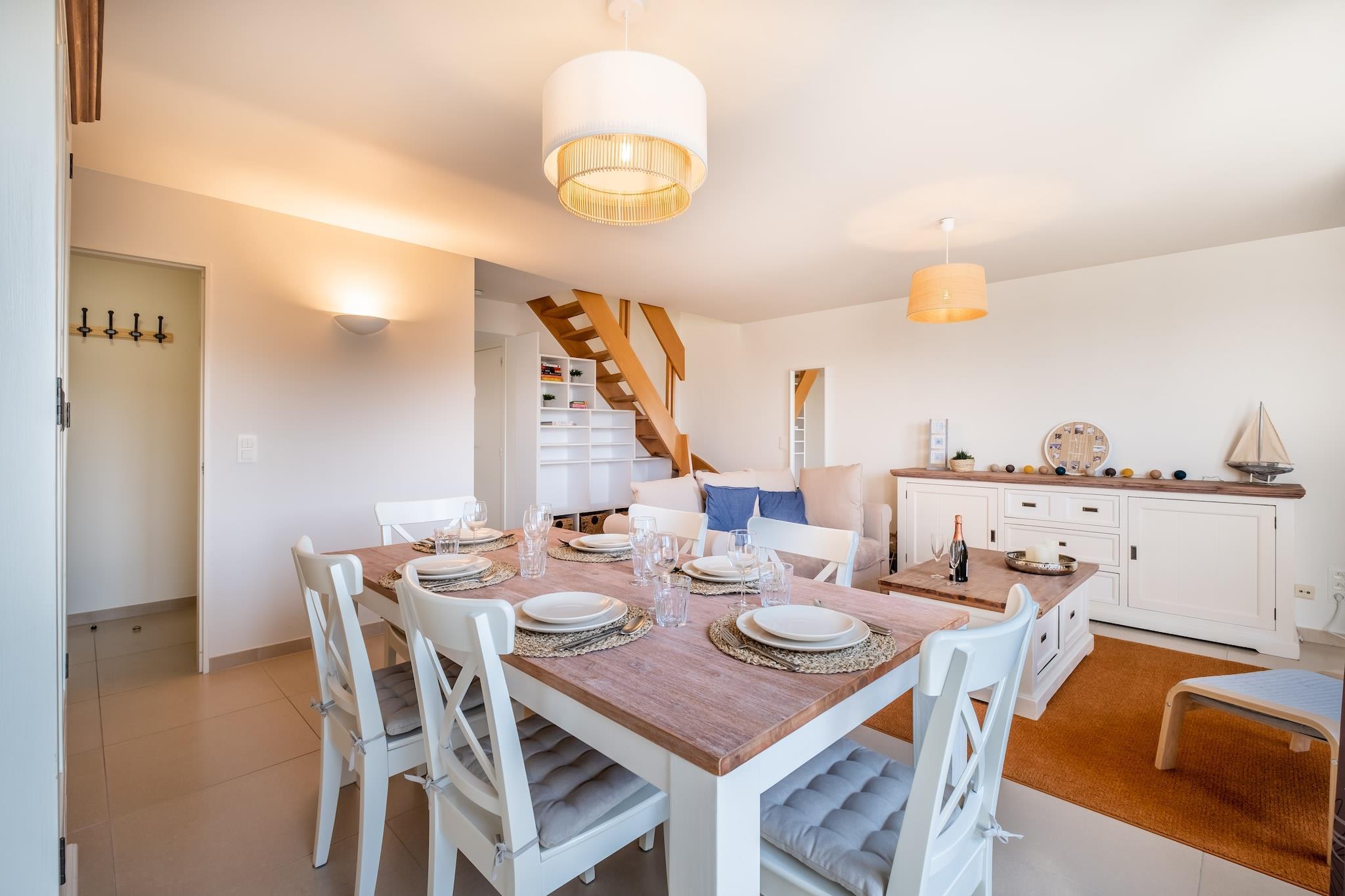 Ljus kustnära duplex Denna soliga etagelägenhet, bara 700 meter från Nordsjön, erbjuder en bekväm vistelse för upp till fyra gäster. Den ligger på 3:e och 4:e våningen och har ett fullt utrustat kök med diskmaskin, mikrovågsugn och kaffebryggare, ett mysigt vardagsrum/matsal med digital-TV och en bäddsoffa och två sovrum på övervåningen - ett dubbelrum och ett med två singlar. Gästerna har en balkong med morgonsol och en annan med eftermiddagssol, ett badrum med badkar, separata toaletter samt tvättmaskin och torktumlare för bekvämlighet. Värme och hiss ger extra komfort. Husdjur och rökning är inte tillåtet. Närliggande aktiviteter och utforskning Lägenheten är idealiskt belägen för cykling och naturvandringar, med natursköna kuststigar i närheten. Golfentusiaster kan nå Koksijde Golf ter Hille på 6 km, medan nöjesparken Plopsaland De Panne ligger bara 5 km bort för familjen. Sandstranden är en 800 meter lång promenad, perfekt för att sola eller promenera längs Nordsjön. Kollektivtrafiken, inklusive kustspårvagnen, ligger inom 1 km, vilket gör det enkelt att utforska Koksijde och omgivande städer. Mat, butiker och bekvämlighet Lokala butiker och en stormarknad ligger bara 100 meter bort, medan tågstationen i De Panne ligger 5 km bort. Restauranger, kaféer och en biograf ligger alla inom gångavstånd, och erbjuder gott om restauranger och underhållning. För de som flyger in ligger Ostends flygplats 32 km bort, vilket säkerställer smidig tillgång till och från din kustnära reträtt.