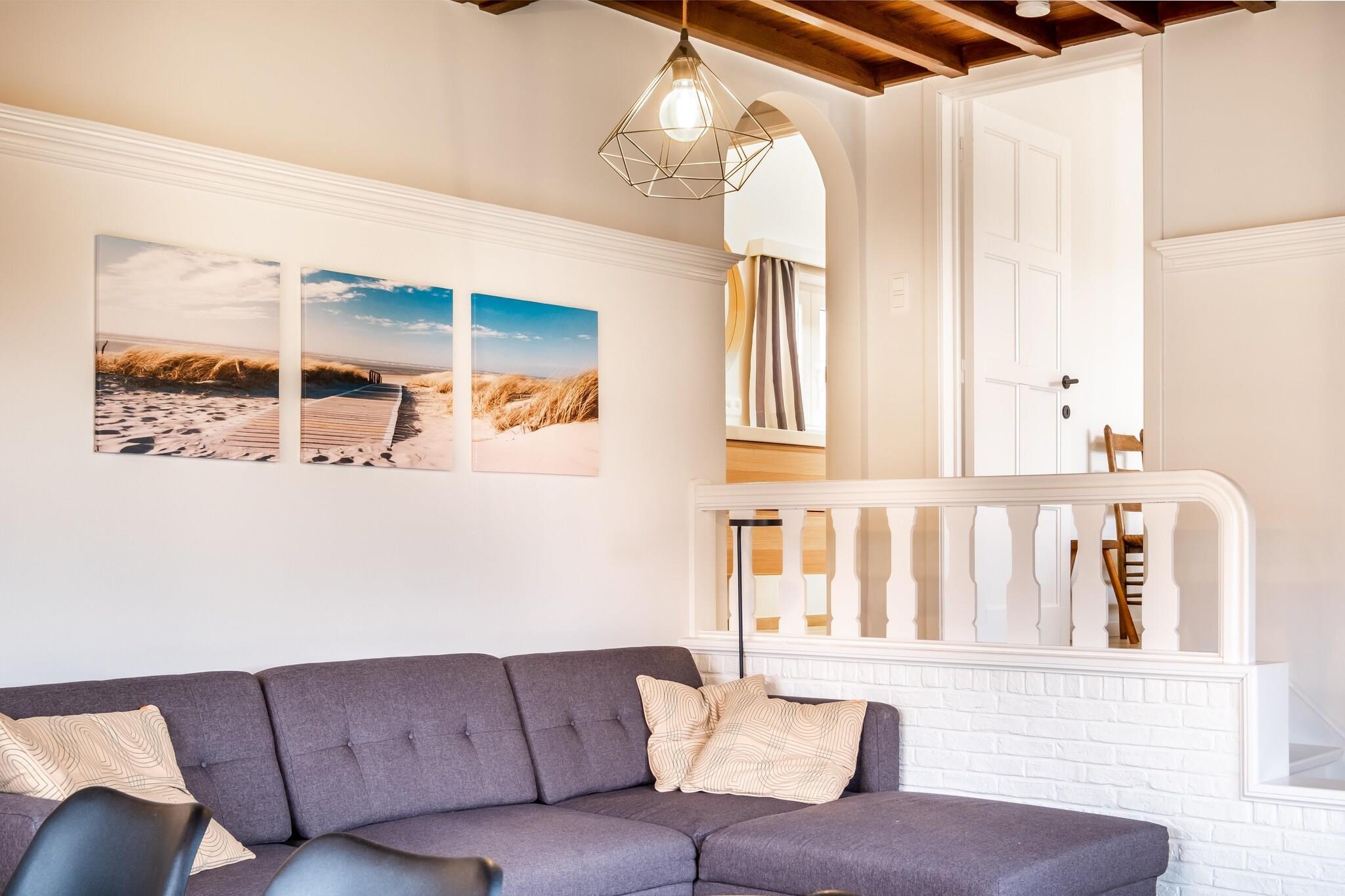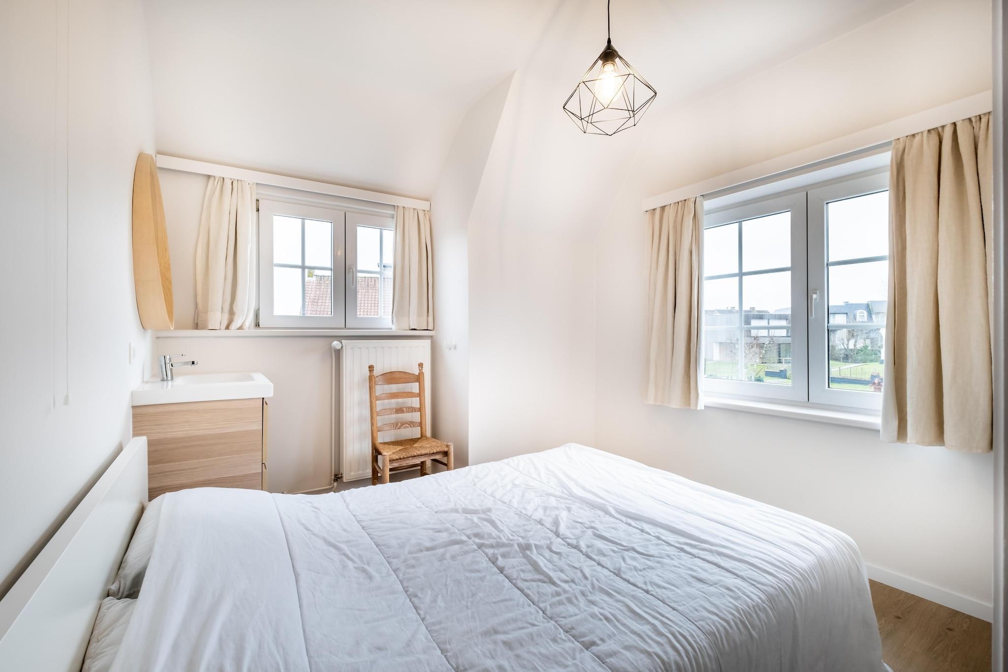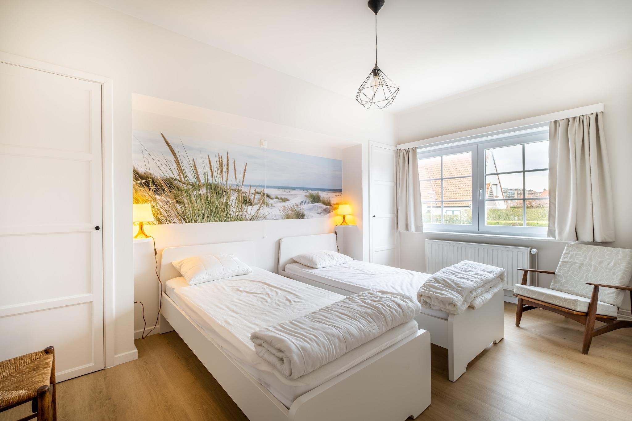 Denna mysiga renoverade villa med 4 rum och en stor solig trädgård ligger 250 m från havet i St-idesbald (en del av kommunen mellan De Panne & Koksijde). Typisk kustvilla, perfekt för en semester med barn. Wifi och digital-TV, husdjur är inte tillåtna. Villan har en hall med separat toalett, renoverat kök med alla bekvämligheter, vardagsrum med TV, badrum med dusch, sovrum med 2 enkelsängar, på övervåningen: 3 rum med dubbelsängar. I 3 rum finns ett handfat med kallt vatten.