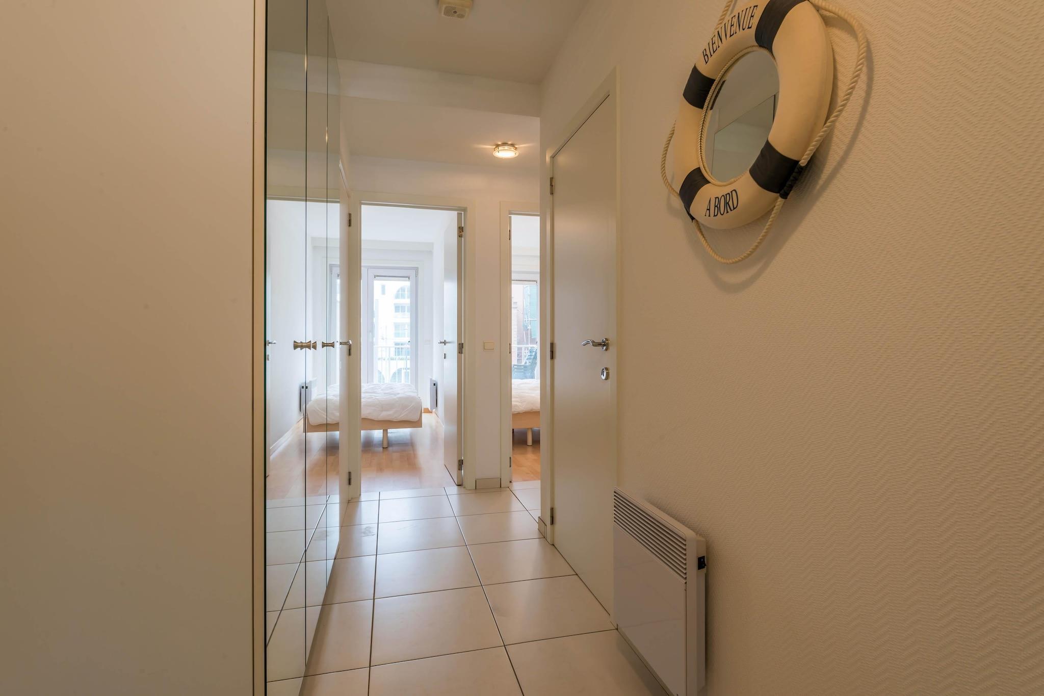 Modern lägenhet för 6 personer vid havet och med 2 sovrum. Nära till centrum, affärer och restauranger. Nära kollektivtrafik. Husdjur är inte tillåtna. Layout Entréhall, vardagsrum med öppet kök, badrum med dusch, separat toalett, bäddsoffa i vardagsrummet, sovrum med dubbelsäng och sovrum med enkelsäng.