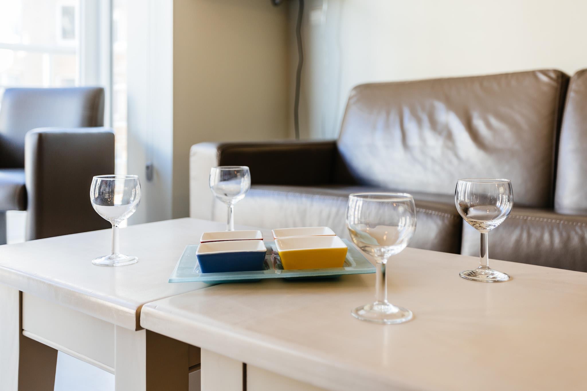 På våning 1: (Kök(Kokplattor(keramisk), vattenkokare, brödrost, Fläkt, kaffebryggare, kombi ugn/mikro, diskmaskin, kyl och frys, Handmixer), ardags- och matrum(bäddsoffa, TV(digital), matbord, sitthörna), sovrum(dubbelsäng(dubbeltäcke, 160 x 200 cm)), sovrum(våningssäng(däcke, 90 x 200 cm)), badrum(dusch, handfat), WC(toalett )) terrass, trädgårdsmöbler, solstolar, hiss