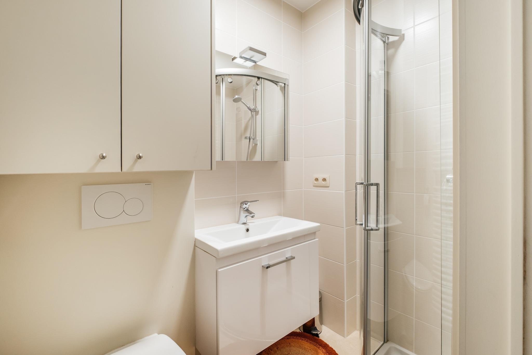 Etagelägenhet med 2 sovrum belägen på bottenvåningen och 1:a våningen. På 150m från Zeedijk och inom gångavstånd från centrum. Garage i Res Rapide på 300m ingår i priset. Husdjur ej tillåtna, rökare. Layout På 1:a våningen finns vardagsrummet med öppet kök, toalett och solig balkong med bistroset. De 2 sovrummen, 1 med dubbelsäng och 1 med våningssäng och badrum med dusch ligger på bottenvåningen. Sovrummet med dubbelsängen har utgång till den kaklade terrassen på baksidan. Du har även tillgång till den stängda terrassen via entrén intill grannhuset. Idealisk för att förvara dina cyklar säkert (utomhus).