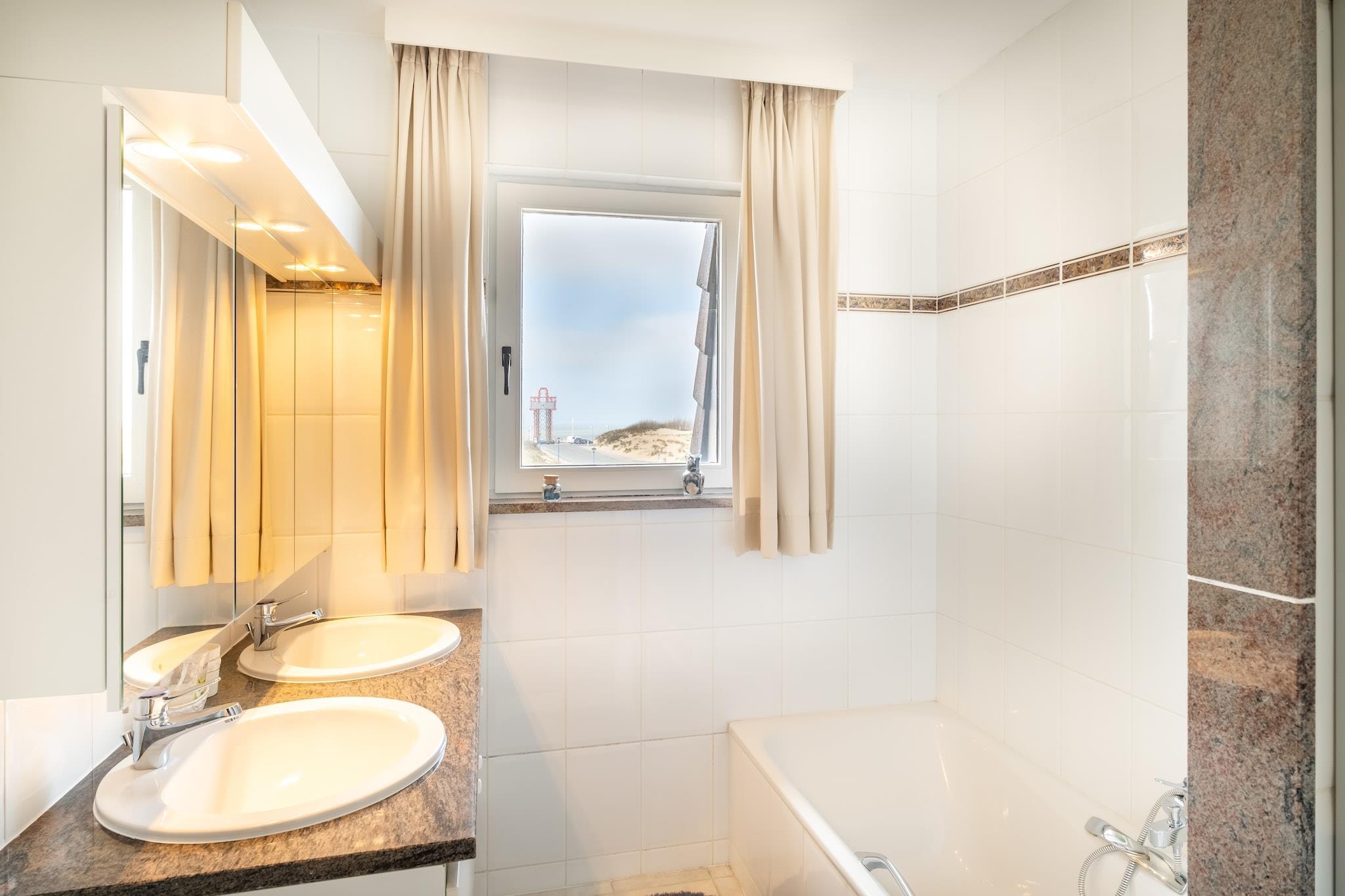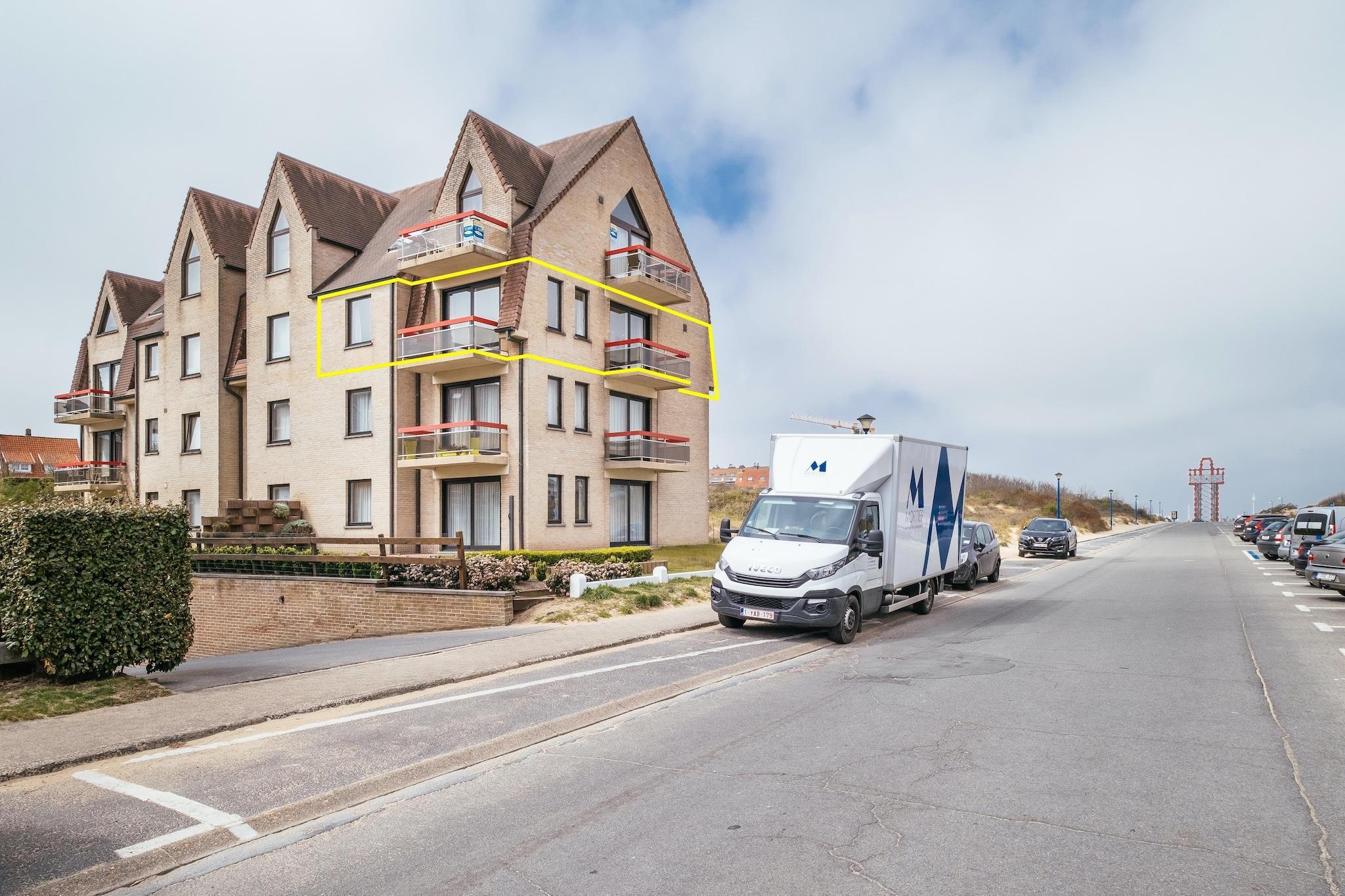 Solig, rymlig och elegant lägenhet med 2 rum med utsikt över sanddynerna mellan Koksijde och St-Idesbald. 3 balkonger, garage i byggnaden bredvid, rökfritt, Wifi och digital-TV. Husdjur är inte tillåtna. Layout Lägenheten består av hall, toalett, förråd, badrum med badkar och dusch, sovrum med dubbelsäng och sovrum med våningssängar och 2 enkelsängar, soligt vardagsrum med fullt utrustat och öppet kök. Obs: Det ges en rabatt på 10 % på grund av pågående byggnadsarbeten som innebär buller och kan påverka lugnet och lugnet i området.