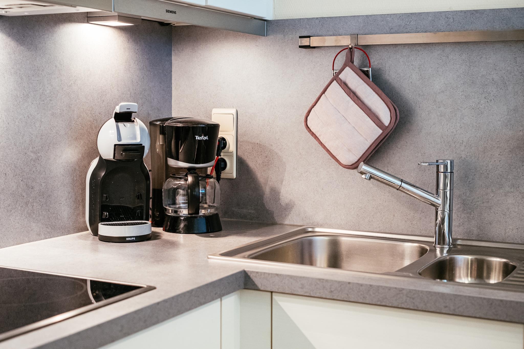 På våning 3: (öppet kök(Kokplattor(keramisk), vattenkokare, brödrost, Fläkt, kaffebryggare, kombi ugn/mikro, diskmaskin, kylskåp(+ frys), Handmixer), ardags- och matrum(bäddsoffa(dubbeltäcke, 160 x 200 cm), TV(platt-tv, digital), matbord, sitthörna, balkong), sovrum(dubbelsäng(dubbeltäcke, 160 x 200 cm)), sovrum(våningssäng(däcke, 80 x 200 cm)), badrum(badkar med dusch, handfat, handfat), WC(toalett )) trädgårdsmöbler(2 personer), lekplats, hiss, barnstol