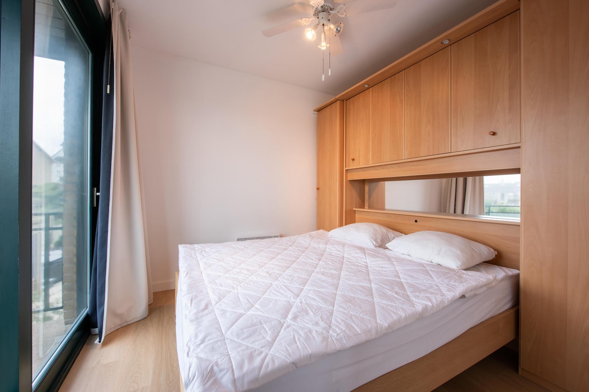 Denna moderna, solbelysta lägenhet erbjuder en perfekt tillflyktsort vid havet, som nyligen har renoverats för ultimat komfort. Idealiskt beläget nära både stranden och ett köpcentrum, ger det enkel tillgång till en mängd olika attraktioner, inklusive en biograf, minigolf, lekplats och boulebanor - allt inom gångavstånd. Med restauranger, stormarknader, bagerier och en slaktare bara 500 meter bort finns allt du behöver nära till hands. Det ljusa och inbjudande vardagsrummet har en TV-hörna, matplats och ett öppet kök med utgång till egen balkong. Lägenheten rymmer bekvämt familjer med två sovrum - ett med dubbelsäng och ett annat med en unik våningssäng (dubbelsäng under, enkel ovanför) för upp till tre gäster. Badrummet har ett badkar med duschvägg och dubbla handfat, medan en separat toalett ger bekvämlighet. En mysig läsbänk vid fönstret, tillsammans med en spjälsäng och barnstol för de små, garanterar en familjevänlig vistelse. Med kollektivtrafiken bara några steg bort är det enkelt att utforska området. Stranden är tillgänglig utan att korsa spårvägen, vilket gör den särskilt idealisk för familjer med små barn. Plopsaland, en populär nöjespark, är lätt att nå med spårvagn och erbjuder en rolig dag för både barn och vuxna. Oavsett om du kopplar av vid havet eller utforskar de pulserande omgivningarna, är denna lägenhet den perfekta basen för en minnesvärd kustsemester.