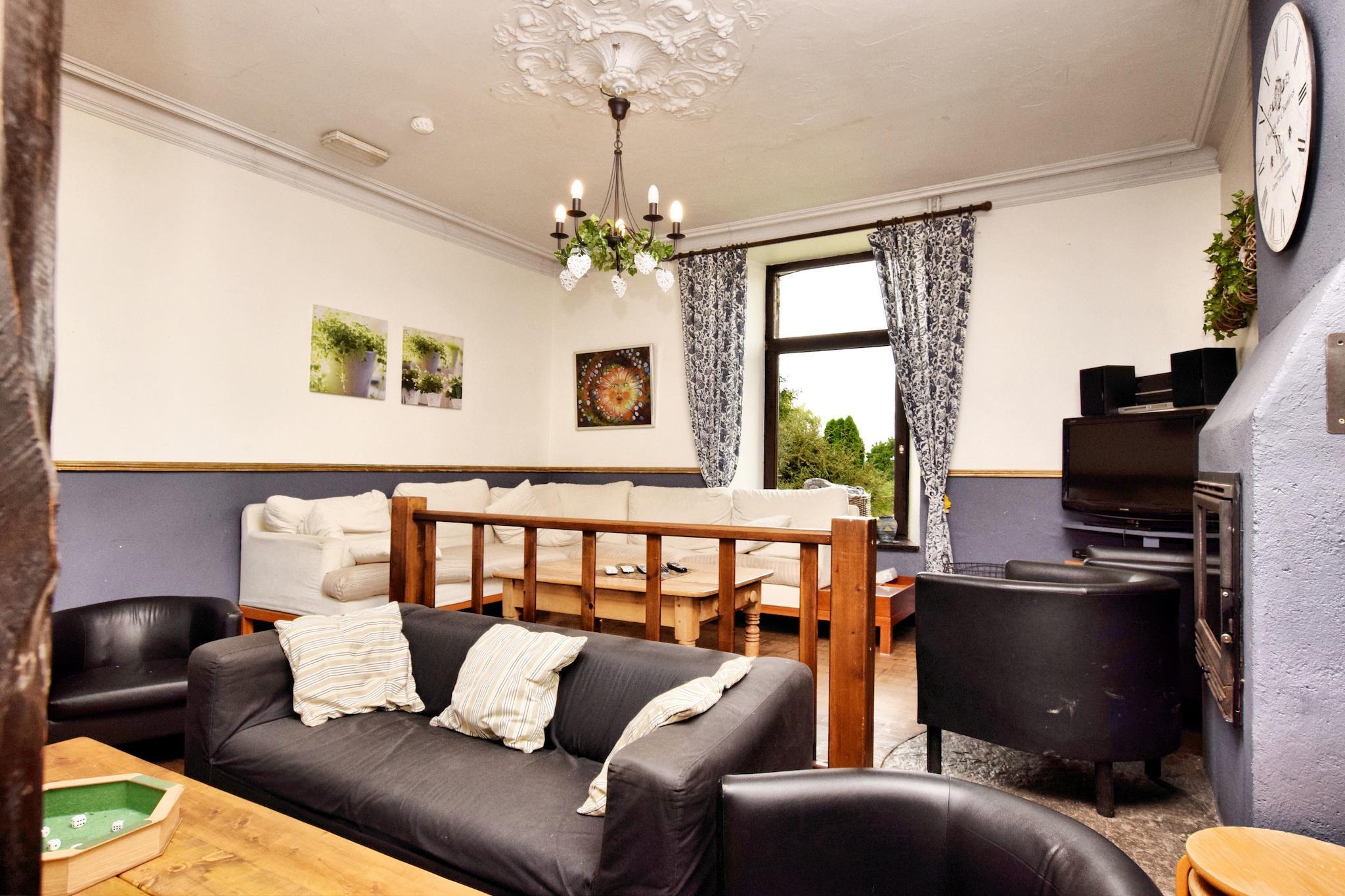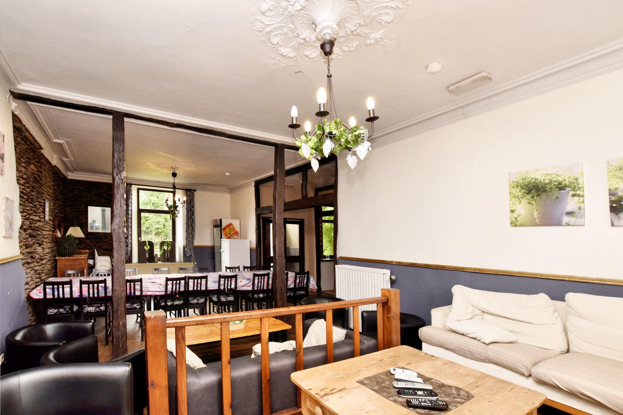 Beläget i den vackra Lierneux, har detta semesterhus 8 sovrum som kan hysa 20 personer, perfekt för grupper av vänner eller familj. Tillsammans med en mysig inredning erbjuder detta semesterhus utsikt över de omgivande skogarna, 300 meter bort. Och du behöver inte lämna dina husdjur hemma. Du kan få 2 husdjur här med dig._x000D_ _x000D_ Du kan vandra, cykla och rida i skogarna här. På vintern kan du åka skidor i populära skidbackar som ligger bara 4-5 km bort. Det finns en lekplats för barn med gungor, rutschkana, studsmatta, badminton och volleyboll. Ett annat sätt att njuta av naturen här är att elda upp grillen och äta tillsammans vid det stora matbordet. Stadens centrum ligger 5 km bort. Det är här du hittar livsmedelsbutiker, flera restauranger och en offentlig inomhuspool._x000D_ _x000D_ Ägarna av fastigheten bor i lokalerna och hjälper gärna till med all information du kan behöva på franska, holländska eller engelska._x000D_