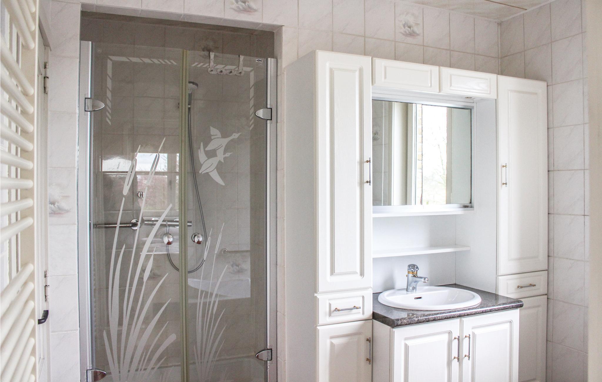 Badrum (nr. 1) - Varmt och kallt vatten. Handdusch, badkar och dusch