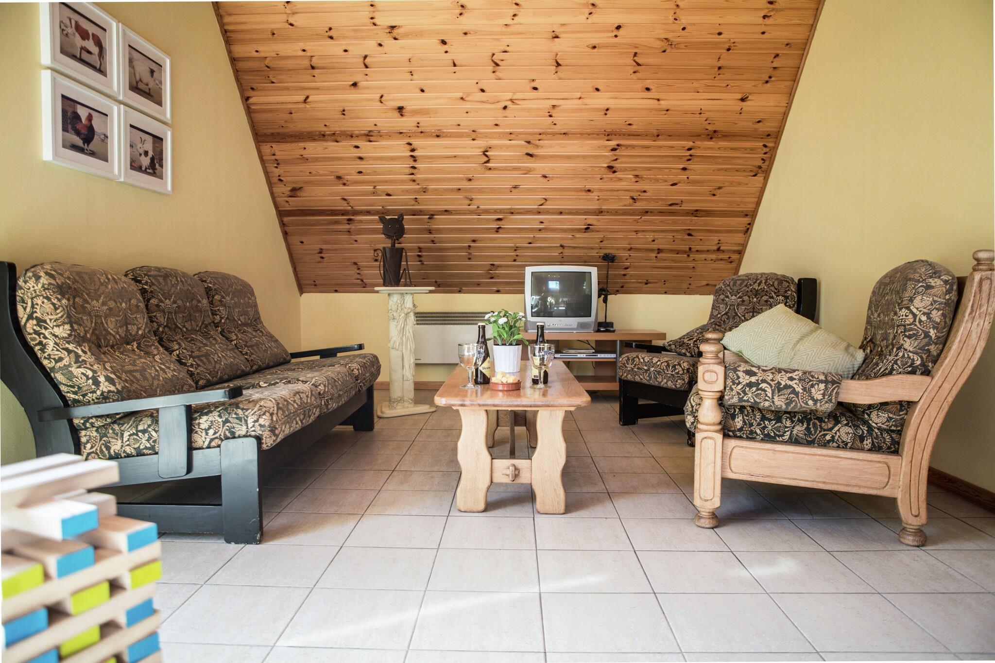 Landsbygdens omgivningar, mitt i ängar och fält, denna mysiga övre våning på en gård (100 m2), bestående av: 1 bra utrustat kök, 1 vardagsrum (c. TV + kabel, stereo, bordtennis), 1 tvilling sovrum (2 x 1), 1 trebäddsrum (3 x 1), 1 trippel öppet sovrum (1 x 1 + 1 bäddsoffa), badrum (dusch, 2 handfat, toalett, tvättmaskin). Överallt elektr. uppvärmning. Överallt täcken. Delad trädgård, trädgårdsmöbler, B.B.Q. Häststall på begäran. Frukost på begäran (betald). "Loenhout" ligger mitt i Breda (20 km), Antwerpen (20 km) och Turnhout (25 km). Ett besök på Trapistenklostret ska recommanded. De som gillar lugna omgivningar kan cykla, föda eller häst för att njuta av "Kalmthoutse" myran. Rökning är inte tillåten