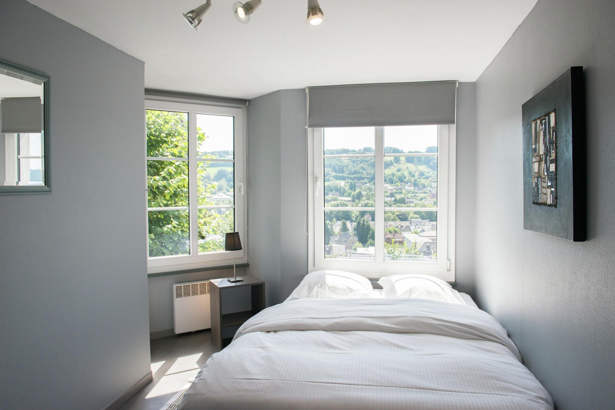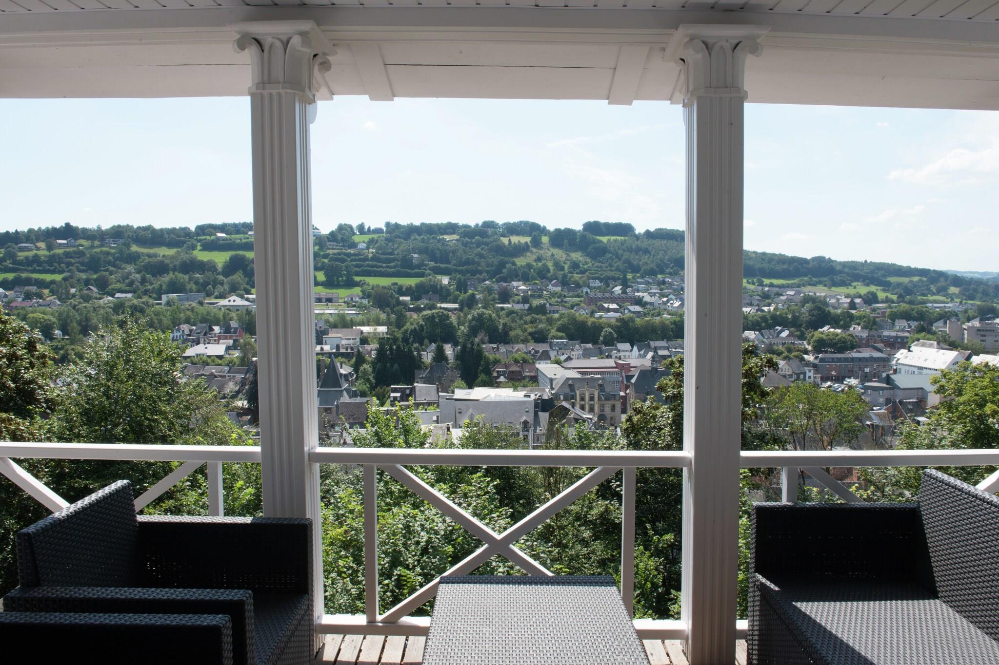 Je kijkt uit over Malmedy en omgeving,via de trappen ben je zo in het centrum,welke voorzien is van vele winkels en prima restaurant.