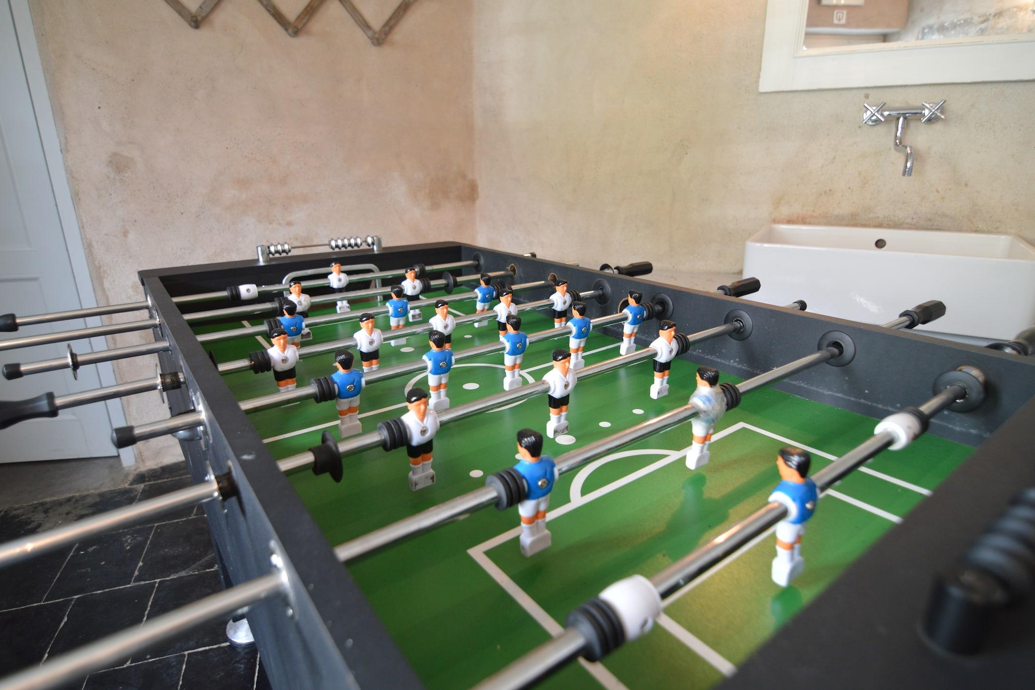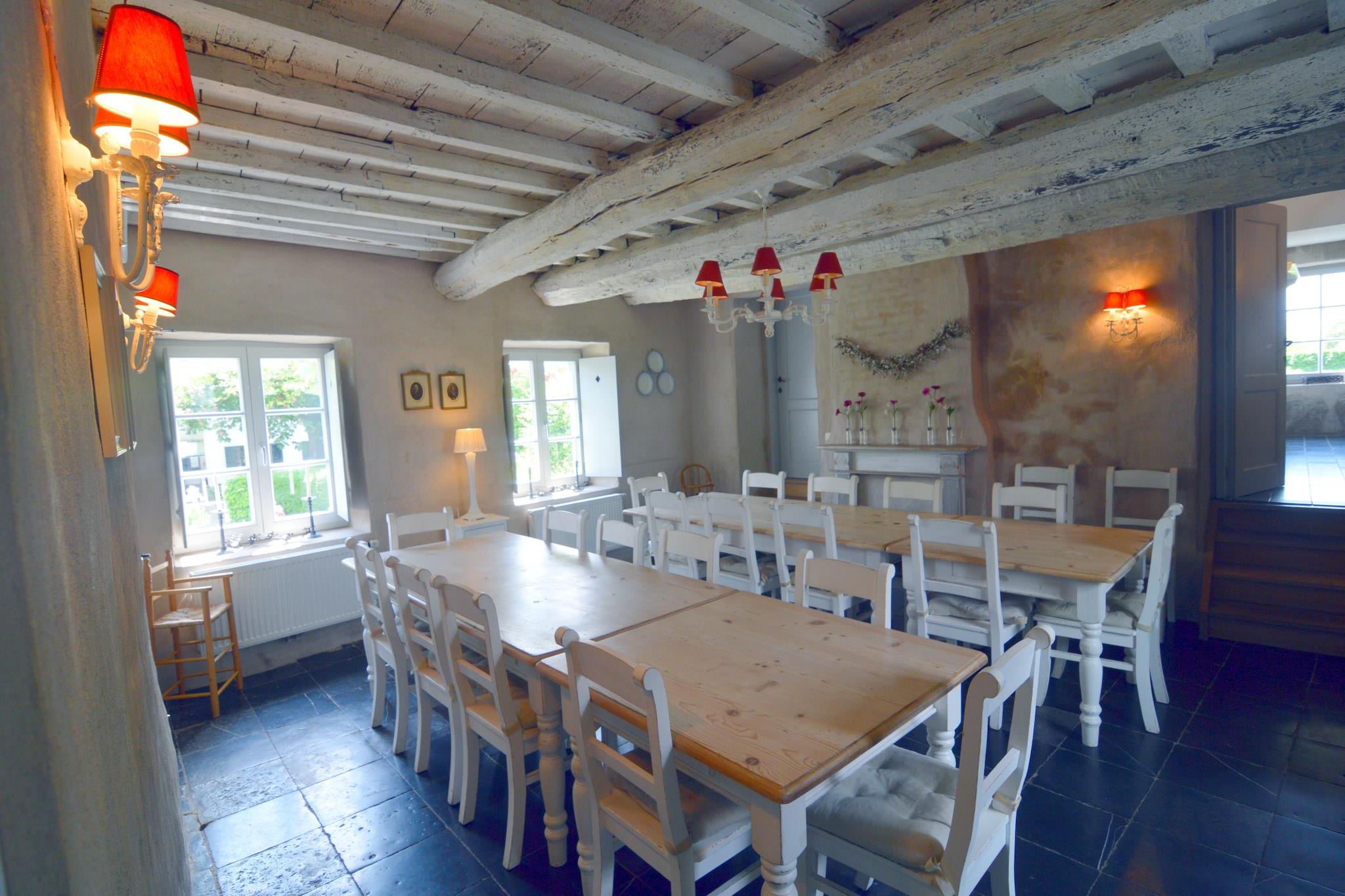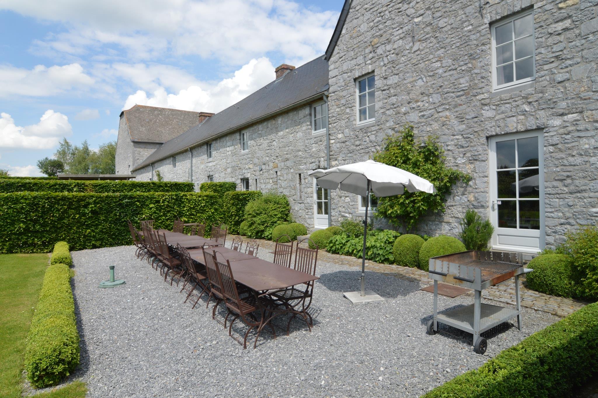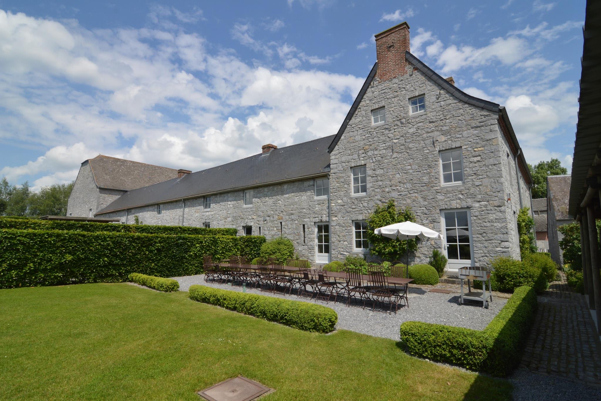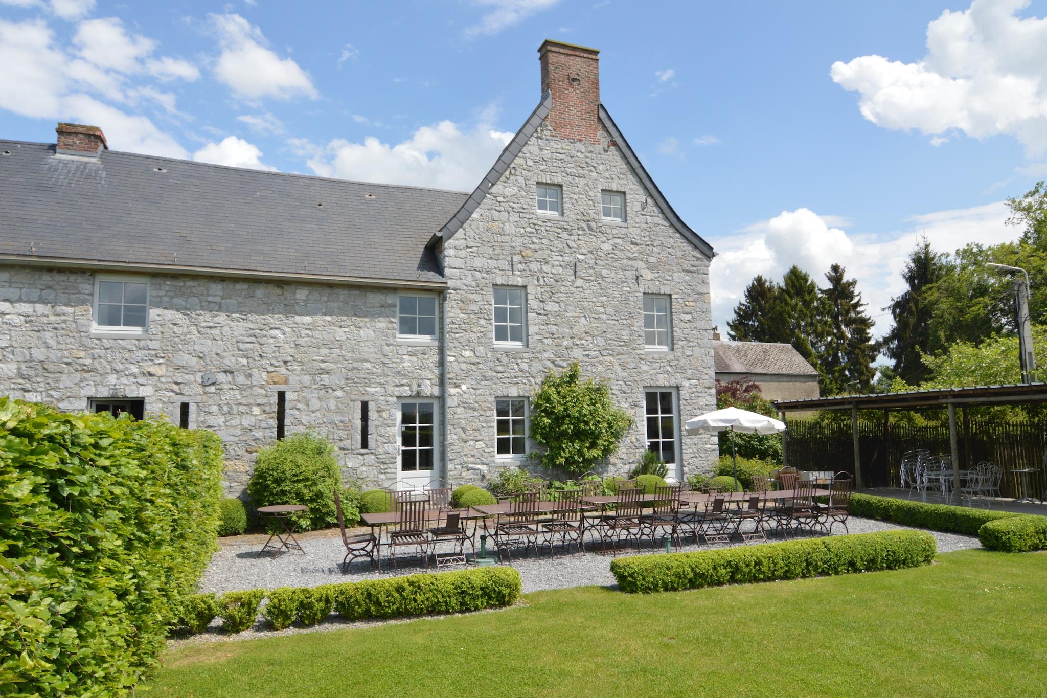 Beläget på en 2 hektar stor egendom i Onhaye, Ardennerna, erbjuder detta lyxiga semesterhus med 9 sovrum en fridfull tillflyktsort för upp till 24 gäster, perfekt för stora familjesammankomster. Omgiven av skogar bara 500 m bort, är det idealiskt för natursköna promenader, medan närliggande stadskärnor (inom 5 km) erbjuder restauranger och kulturella upplevelser. En sjö (15 km), golfbana (18 km) och idrottsanläggningar (12 km) bidrar till utbudet av aktiviteter. Hemmet har en ny wellnessavdelning, en trädgård med terrass, utemöbler och en grill, perfekt för avkopplande kvällar med nära och kära. Inuti garanterar den rymliga layouten komfort och avskildhet för alla gäster, och blandar rustik charm med moderna bekvämligheter. Bekvämt beläget 1 km från kollektivtrafiken och 12 km från tågstationen, är denna egendom lättillgänglig men ändå lyckligt avskild. Oavsett om du planerar ett firande eller en fridfull. Tillflyktsort erbjuder denna fastighet den perfekta blandningen av komfort, natur och lyx