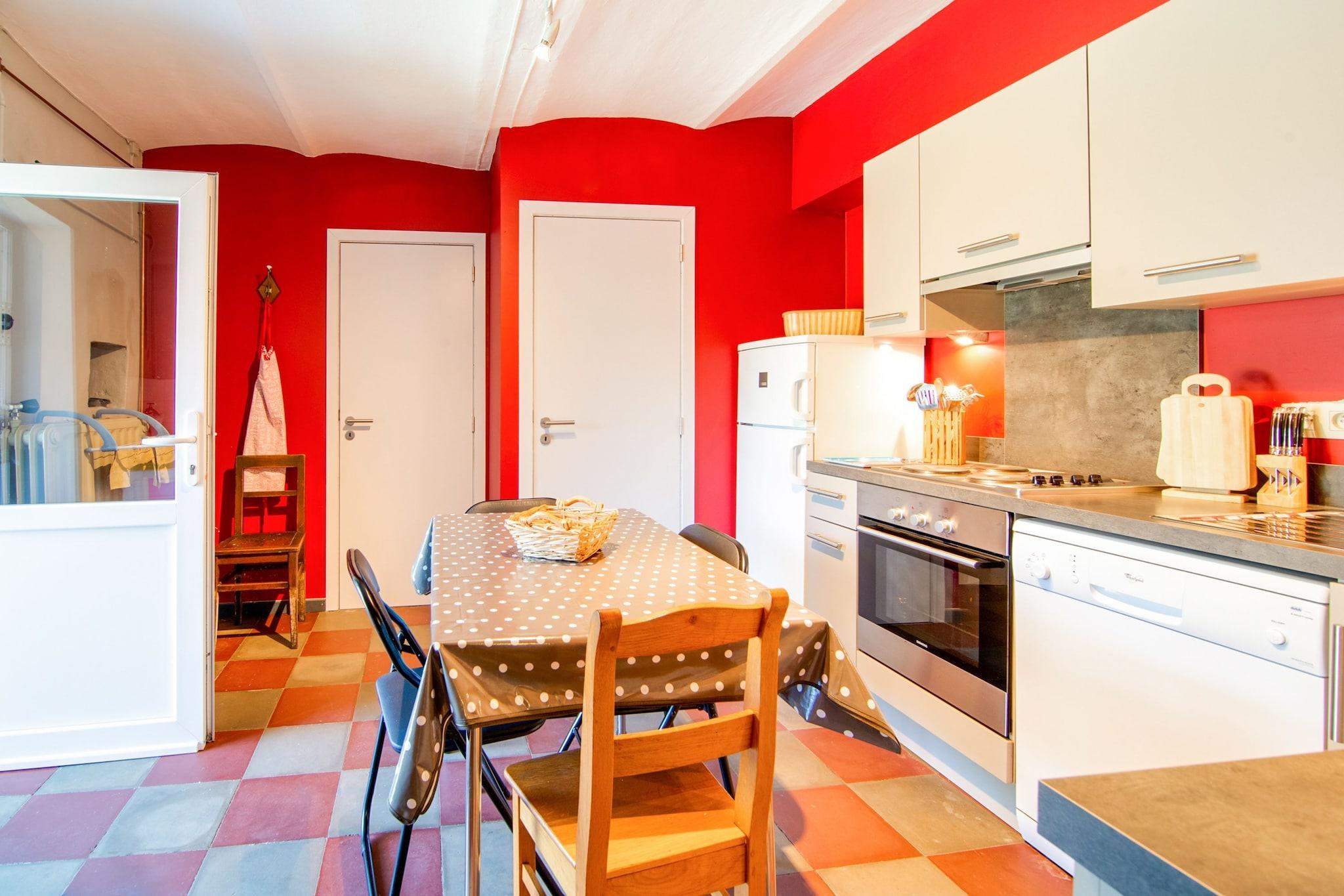 Bottenvåningen: (Korridor, Vardagsrum(matbord(4 personer), kyl och frys), Vardagsrum(TV, dekorativ öppen spis, sitthörna(7 personer)), Matsal(matbord(8 personer), Braskamin(trä), Handmixer), Kök(matbord, vattenkokare, brödrost, spis(Spis med 4 kokplattor, elektrisk), Fläkt, kaffebryggare, ugn, mikrovågsugn, diskmaskin, kyl och frys), sovrum(dubbelsäng(dubbeltäcke, 160 x 200 cm)), badrum(dusch, handfat), grovkök, toalett ) På våning 1: (sovrum(2x enkelsäng(däcke, 90 x 200 cm)), sovrum(dubbelsäng(dubbeltäcke, 160 x 200 cm), vagga), sovrum(enkelsäng(däcke, 90 x 200 cm)), badrum(badkar med dusch, handfat, toalett , bidé, tvättmaskin, strykbräda, strykjärn)) terrass(privat, tak), trädgård(privat, inhägnad, anlagd trädgård), cykelförvaring, trädgårdsmöbler, grill