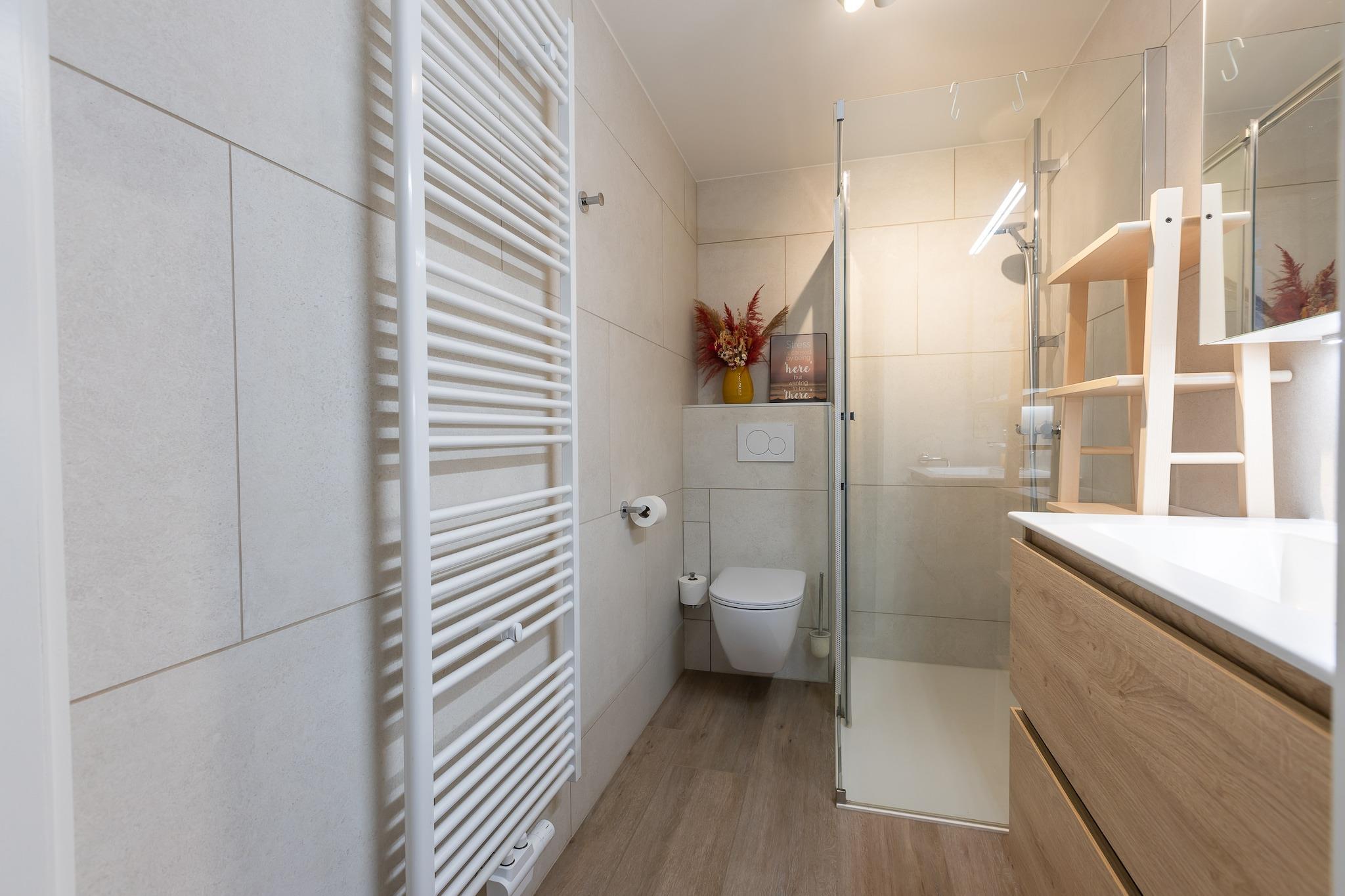Denna eleganta lägenhet ligger på 6:e våningen, bara 20 meter från stranden, på Zeedijk 248, 8430 Middelkerke, och erbjuder en fridfull tillflyktsort vid kusten för upp till 4 gäster. Det mysiga vardagsrummet har en bäddsoffa och fönster från golv till tak som vetter mot en rymlig terrass med fantastisk havsutsikt, perfekt för morgonkaffe eller avkoppling i solnedgången. Lägenheten har ett sovrum med en bekväm dubbelsäng och ett modernt öppet kök utrustat för enkel matlagning. Det nyligen renoverade badrummet har en elegant duschkabin och toalett, som kombinerar komfort med modern design. Oavsett om du planerar en romantisk semester eller en strandsemester med vänner, erbjuder den här lägenheten både charm och funktionalitet. Gratis WiFi ingår, men parkering inte. Gästerna ombeds vänligen att ta med egna lakan, handdukar och påslakan. Med sitt oslagbara läge nära strandpromenaden, affärerna och kollektivtrafiken är denna lägenhet en perfekt bas för att utforska den belgiska kusten.