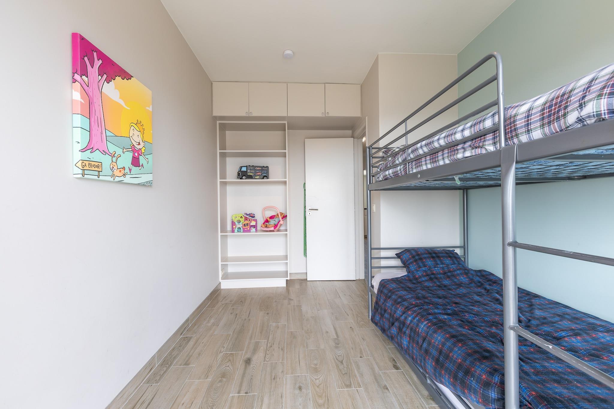 Denna lägenhet på bottenvåningen ligger bara några steg från havet på Zeedijk 269, 8430 Middelkerke, och är perfekt för familjer eller grupper på upp till 7 gäster. Det ljusa vardagsrummet har en dubbel bäddsoffa, TV, matplats och en mysig sittplats, perfekt för avkoppling efter en dag på stranden. En privat terrass och tillgång till hiss bidrar till komforten och bekvämligheten. Lägenheten har två sovrum: ett med dubbelsäng och ett med en enkelsäng och en våningssäng, perfekt för barn eller vänner. Det fullt utrustade köket har en kaffebryggare, juicepress, ugn, mikrovågsugn, diskmaskin och kyl-frys, vilket gör det enkelt att laga mat hemma. Badrummet har en dusch, och det finns en separat gästtoalett för extra enkelhet. Ytterligare bekvämligheter inkluderar en tvättmaskin, torktumlare och radio. Med sitt utmärkta läge nära strandpromenaden, affärer och kollektivtrafik, erbjuder denna lägenhet en avslappnad och praktisk bas för din kustsemester i Västflandern.