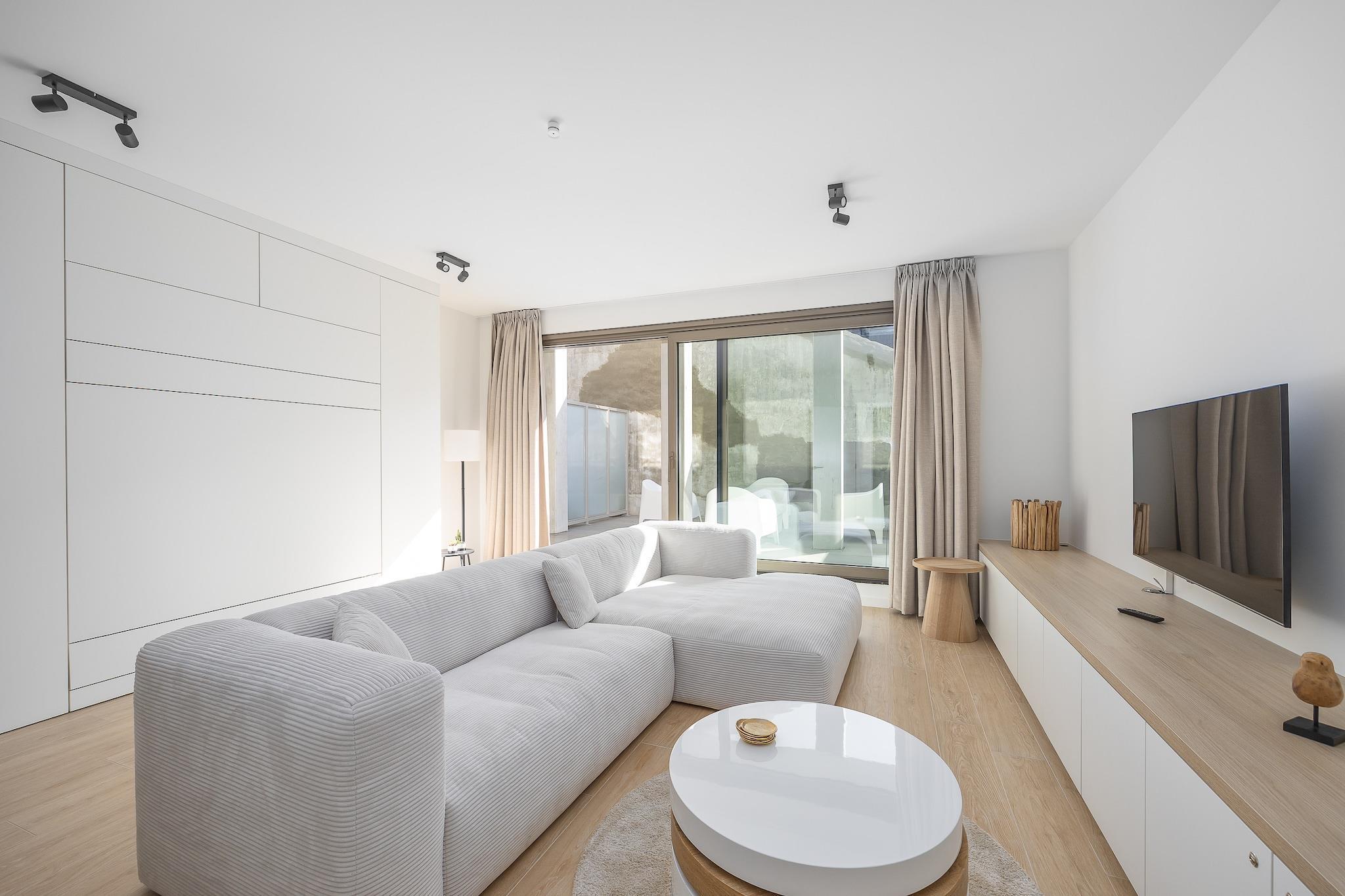 Denna nybyggda studio på första våningen erbjuder en ljus och modern oas bara några steg från stranden, strandpromenaden och det nya kasinot. Med 50 m² av genomtänkt utrymme, har den en garderobssäng för 2 och en automatisk uppblåsbar madrass för 1, vilket gör den idealisk för par eller små grupper. Det rymliga vardagsrummet är fyllt med naturligt ljus från stora fönster som vetter mot en generös terrass, som snart ska inredas för avkoppling utomhus. Det öppna köket är fullt utrustat med moderna apparater, perfekt för att laga mat hemma. En duschkabin ger badrummet en touch av lyx, och en separat toalett ökar bekvämligheten. Studions kvalitetsfinish, elegant inredning och unik arkitektur, som blandar en historisk fasad med rena, moderna linjer, skapar en varm och elegant atmosfär. Studion ligger i hjärtat av staden och erbjuder direkt tillgång till affärer, en spårvagnshållplats och alla kustnära höjdpunkter i Middelkerke. Wi-Fi och parkering ingår, och gästerna ombeds vänligen att ta med egna lakan och handdukar. Oavsett om du är här för att varva ner eller utforska, är denna studio en perfekt blandning av komfort och läge.
