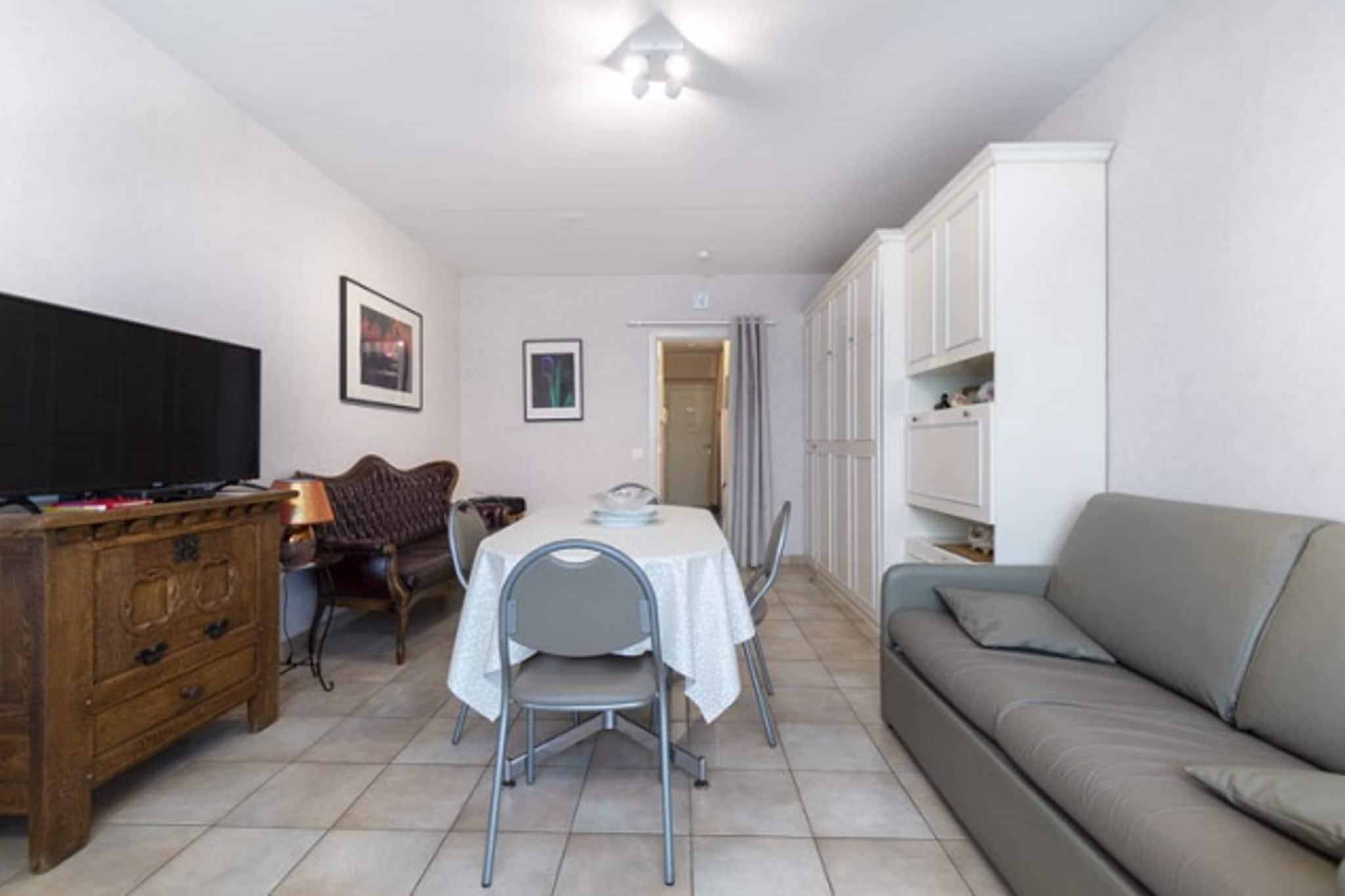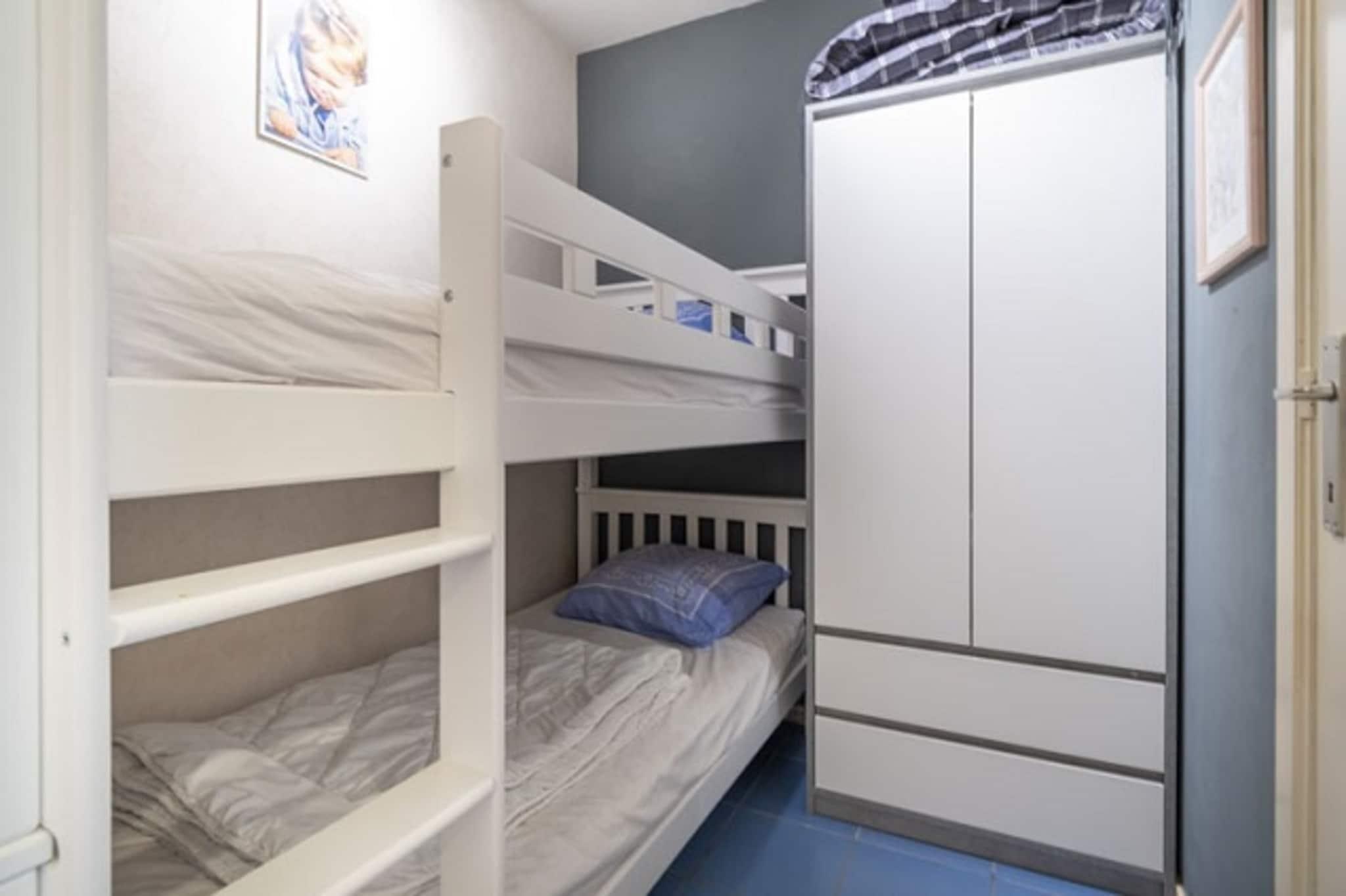 Denna mysiga studio ligger på andra våningen och erbjuder en bekväm vistelse med sovplatser för upp till 4 personer. Den har ett vardagsrum med matplats, en sittgrupp och en garderobsäng för extra bekvämlighet. Studion har också ett kök och ett badrum med badkar, vilket ger en avkopplande plats att varva ner efter en dag av sightseeing. Den soliga terrassen låter gästerna njuta av sidoutsikt över havet, perfekt för att njuta av den friska luften och utsikten. Boendet är husdjursvänligt, vilket gör att gästerna kan ta med sig sina lurviga följeslagare. Studion är idealiskt belägen bara några minuter från centrum, vilket gör det enkelt att utforska området. Med en spårvagnshållplats i närheten är det enkelt att ta sig till lokala attraktioner, kaféer och restauranger, vilket säkerställer att du har mycket att se och göra under din vistelse. Det solorienterade läget garanterar också gott om naturligt ljus hela dagen, vilket gör att studion känns varm och inbjudande. Oavsett om du vill besöka stranden eller upptäcka den lokala kulturen, är allt inom räckhåll. Inuti är studion fullt utrustad med nödvändiga bekvämligheter, inklusive en bäddsoffa, våningssäng, kaffebryggare, Senseo, mikrovågsugn och elektrisk spis. Badrummet har dusch och toalett för din bekvämlighet. Studion erbjuder även digital-TV och Wi-Fi för underhållning och för att hålla kontakten. Med elektrisk uppvärmning och en sopkällare ger denna studio ett bekvämt och praktiskt utrymme för en minnesvärd vistelse.