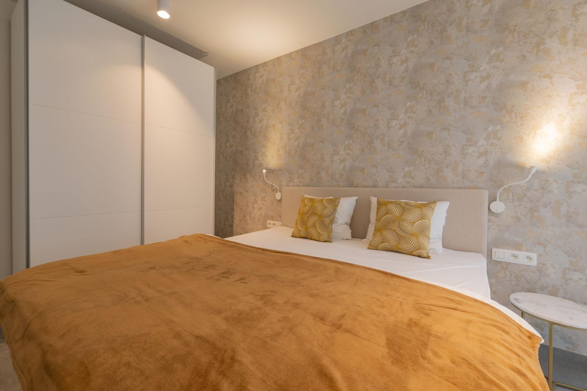 Denna vackra, nybyggda lägenhet är perfekt för en avkopplande vistelse, och erbjuder två rymliga sovrum och moderna bekvämligheter för upp till fyra gäster. Det stora sovrummet har en dubbelsäng, medan det andra sovrummet är utrustat med en våningssäng, vilket gör det idealiskt för familjer. Till lägenheten hör en stor solterrass med utemöbler, perfekt för att njuta av byggnadens soliga sida. Vardagsrummet, med klinkergolv, är utrustat med en digital-TV för underhållning. Fastigheten erbjuder även underjordisk parkering, ett allmänt cykelskjul och Wi-Fi i hela byggnaden. Denna lägenhet är centralt belägen och erbjuder enkel tillgång till lokala attraktioner och aktiviteter. Det är bara 5 km från golfbanan Ter Hille Koksijde och 5 km från Marina Nieuwpoort, medan den populära temaparken Plopsaland De Panne ligger bara 20 km bort. Gästerna kan utforska närliggande butiker, restauranger och kaféer, eller bara njuta av de livliga omgivningarna. Byggnadens läge säkerställer en lugn men ändå bekväm plats för både avkoppling och äventyr. Inuti är det öppna köket fullt utrustat med induktionshäll, kyl med frysfack, Nespressomaskin, diskmaskin och kombimikrovågsugn/ugn, så att du enkelt kan laga mat. Badrummet har dusch, handfat och separat toalett. Gästerna kan också njuta av bekvämligheten med en kombinerad tvättmaskin och torktumlare. För en extra touch av lyx finns frukost- och hälsotjänster tillgängliga på Corner Hotel mot bokning och betalning. Observera att husdjur inte är tillåtna i lägenheten.