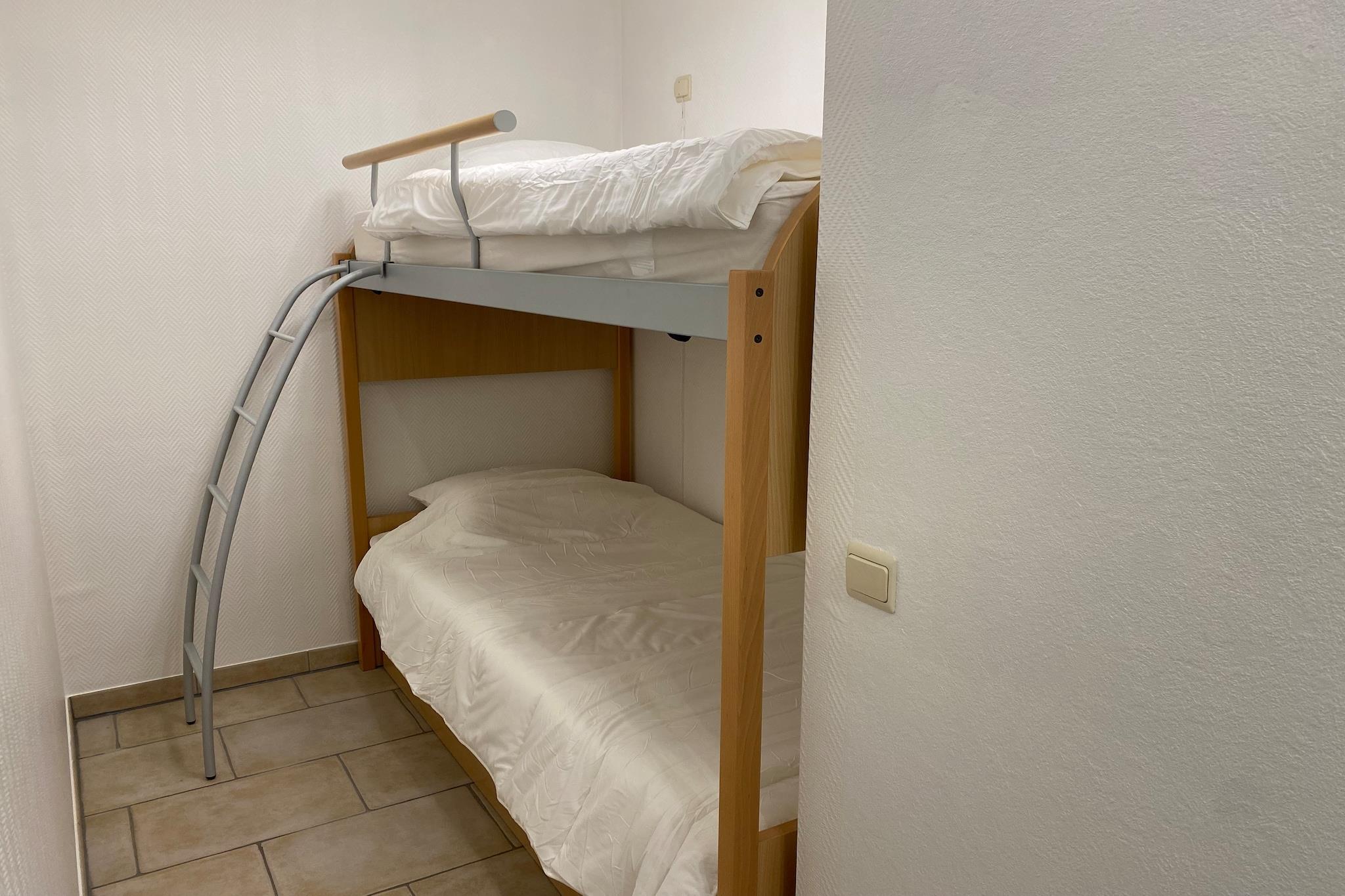 Denna mysiga lägenhet på tredje våningen erbjuder en lugn vistelse med vacker utsikt över sjöfarten. Den har ett sovrum med en dubbelsäng, tillsammans med en sovhörna med en våningssäng, vilket gör den idealisk för upp till fyra gäster. Vardagsrummet är utrustat med digital-TV och öppnar upp till en terrass på framsidan, perfekt för att njuta av utsikten. Byggnaden är rullstolsanpassad och erbjuder Wi-Fi för alla dina surfbehov. Dessutom finns det ett allmänt cykelskjul för gäster som föredrar att cykla. Lägenheten har ett bekvämt läge, bara 5 km från golfbanan Ter Hille Koksijde och 5 km från Marina Nieuwpoort, vilket gör det enkelt att njuta av utomhusaktiviteter. För familjer ligger den populära nöjesparken Plopsaland De Panne bara en kort bilresa bort och erbjuder nöje och spänning. Lägenhetens läge ger också enkel tillgång till lokala marknader, restauranger och kaféer, perfekt för dem som vill utforska området. Inuti är det öppna köket fullt utrustat med kylskåp, kombimikrovågsugn/ugn, diskmaskin, vattenkokare, Senseo kaffemaskin och en vanlig kaffebryggare, så att du enkelt kan laga mat. Badrummet har dusch och badkar, samt ett handfat och en separat toalett. Med sina bekväma bekvämligheter och fantastiska läge erbjuder denna lägenhet en fantastisk bas för en avkopplande vistelse i regionen.